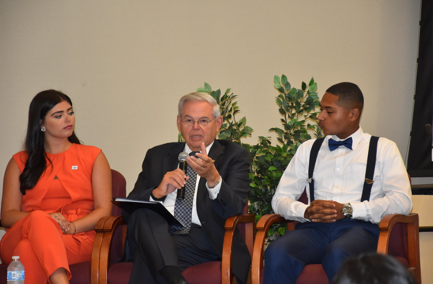 In a roundtable discussion, Sen. Menendez heard from Matthew Brown, a cybersecurity major at RCSJ-Cumberland and Ashley Kulikowski, a psychology student enrolled in the new 3+1 program at Rowan College Gloucester County (RCGC).