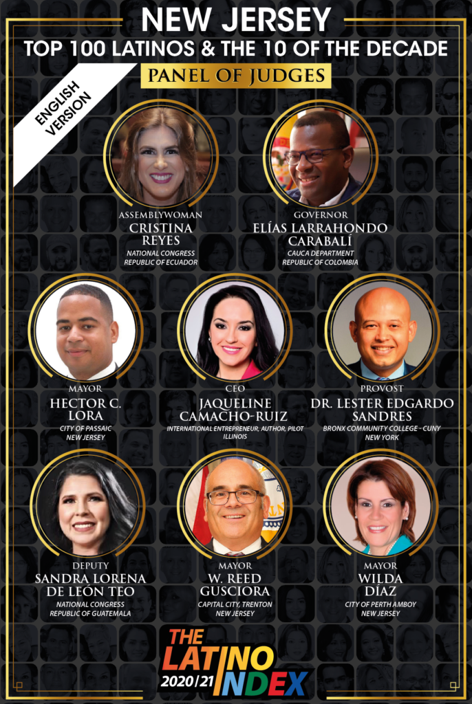From September 20th through the 28th the Ecuadorian Assemblywoman and 2020 former presidential candidate Cristina Reyes; the Colombian first Afro-descendant to become governor of the Cauca Department, Elias Larrahondo Carabali; the honorable mayor of Passaic, Hector C. Lora; the first Honduran Provost of Bronx Community College of CUNY, Dr. Lester E. Sandres Rápalo; the international entrepreneur, author and pilot Jaqueline Camacho-Ruiz; the first mayor to be a member of the LGTBQ community in the capital of New Jersey, W. Reed Gusciora; rights and culture advocate of the Garifuna culture in Guatemala, Deputy Sandra Lorena de Leon Teo; and the first mayor of Puerto Rican descent in the United States, Wilda Diaz will be responsible for ranking the profiles.