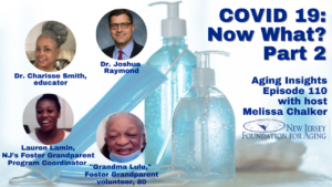 Part 2 of “COVID-19: Now What?” (Aging Insights Episode 110), now airing, features physician Dr. Joshua Raymond and educator Charisse Smith, Ph.D. – both NJFA Board members – as well as New Jersey’s Foster Grandparent Program (NJ/FGP) Coordinator Lauren Lamin and a Foster Grandparent “Grandma Lulu.”