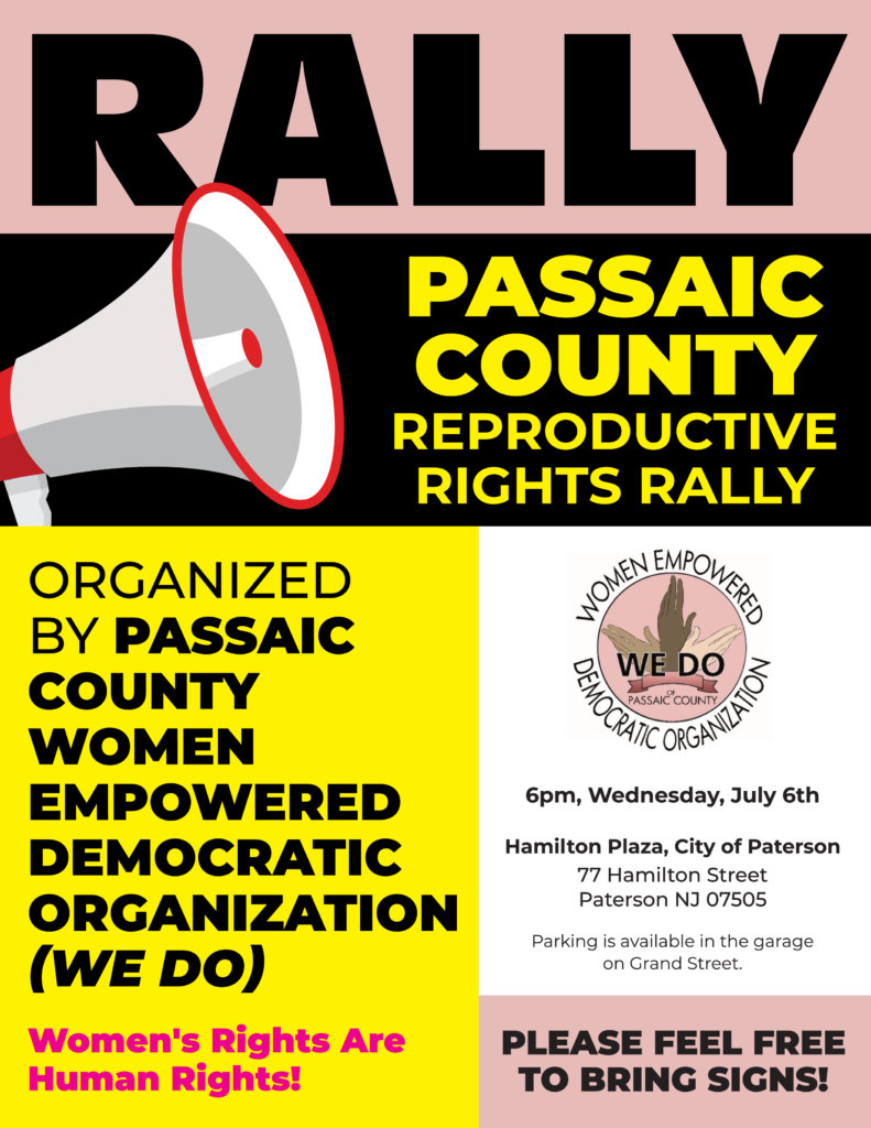 Wednesday July 6th: Passaic County Women Empowered Democratic Organization (WE DO) To Host 'Reproductive Rights Rally'