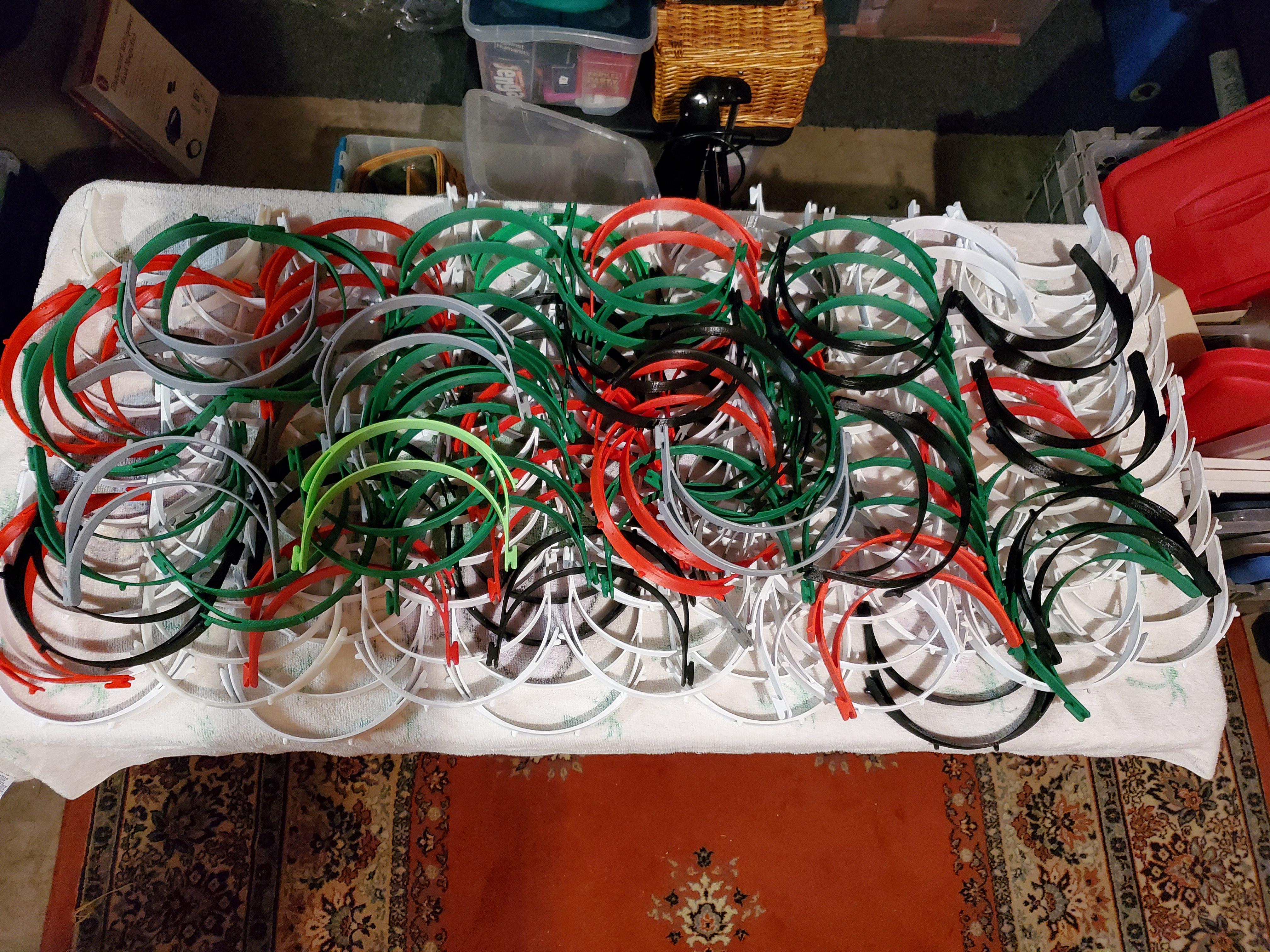 In addition to the three printers running constantly in his basement, Hofmann assembled a small army of more than 45 volunteers to help print the face shield headbands and chin piece. Many large and small companies, robotics teams, technology teachers, engineers, and hobbyists answered the call for assistance in printing.