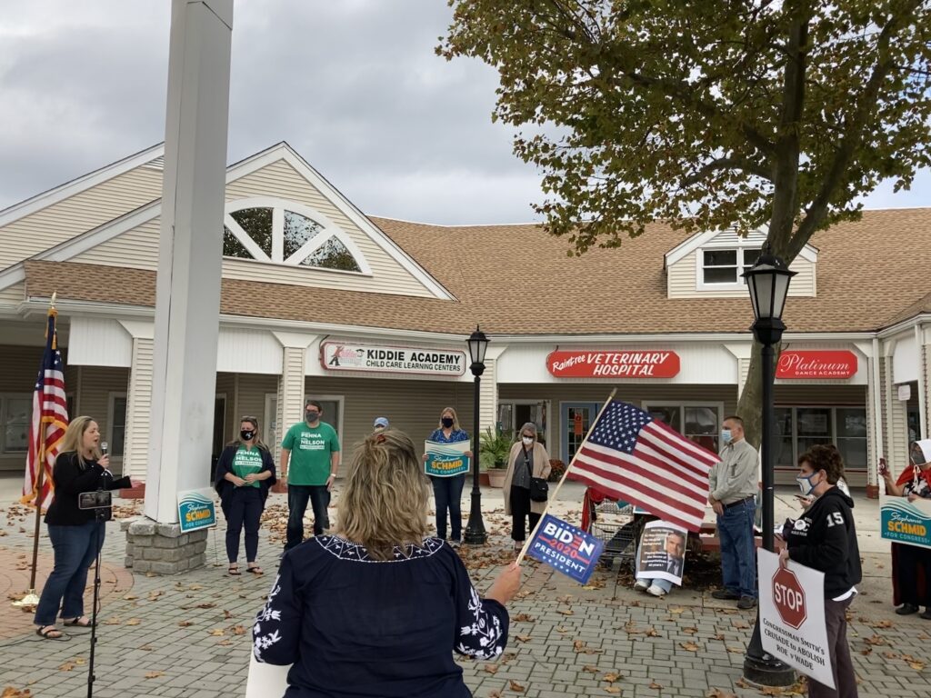 The Stephanie Schmid for Congress campaign had a Get Out the Vote Rally outside of Rep. Chris Smith’s Freehold office today with Monmouth County Clerk candidate, Angela Ahbez-Anderson, Monmouth County Freeholder candidates, Moira Nelson and Michael Penna, and Assemblywoman Joann Downey (LD-11).