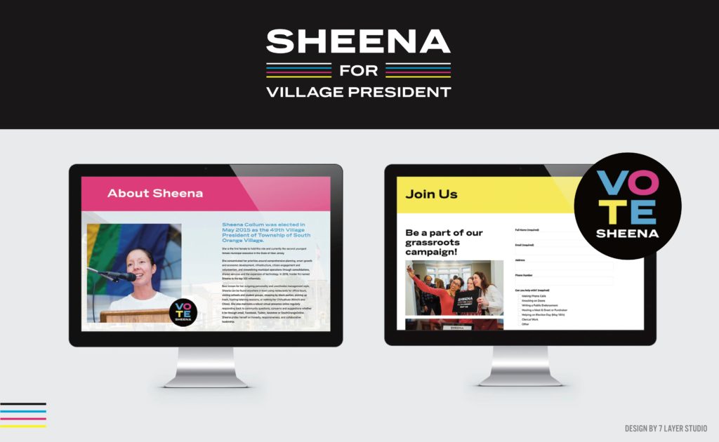 “Sheena came to us to create a visual identity and website that reflects her commitment to the South Orange community along with her energetic personality. She’s informal and deeply relatable and it was important that her campaign branding reflect that. We set out to show voters the depth and breadth of her work and collaborative leadership style. She’s not trying to reinvent herself.” said Zorel.