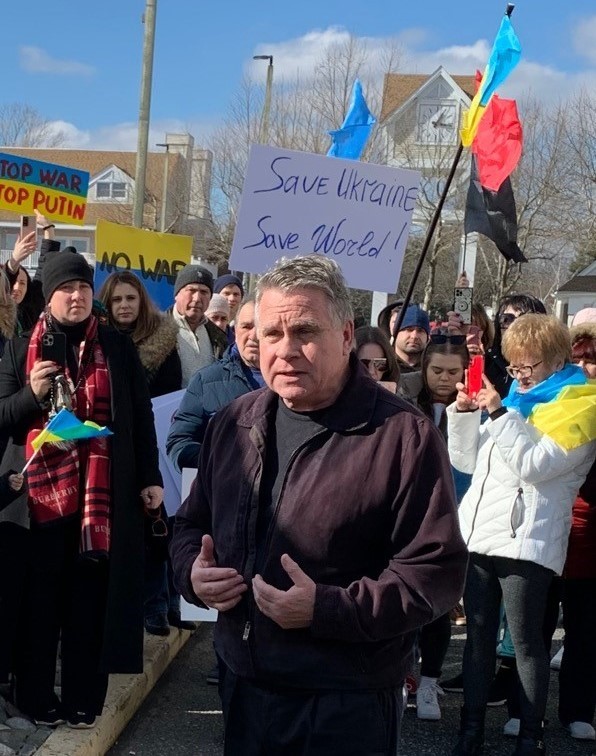 FREEHOLD — At a rally outside his Freehold office on Saturday, Rep. Chris Smith (R-NJ) joined approximately one hundred Ukrainian-Americans whose family members and friends are in grave danger as Vladimir Putin ruthlessly invades their nation and slaughters innocent women, men and children.