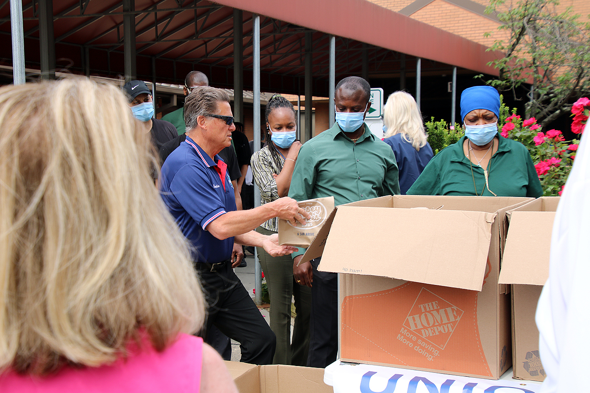 Don Dileo of Trenton, chair of the UVC Steering Committee and an Army veteran who served honorably and proudly, led the presentation of lunches for the staff, donated by the UVC and the New Jersey State AFL-CIO and its affiliated unions, and a gift of union-made baked goods and other snacks for the residents, donated by the