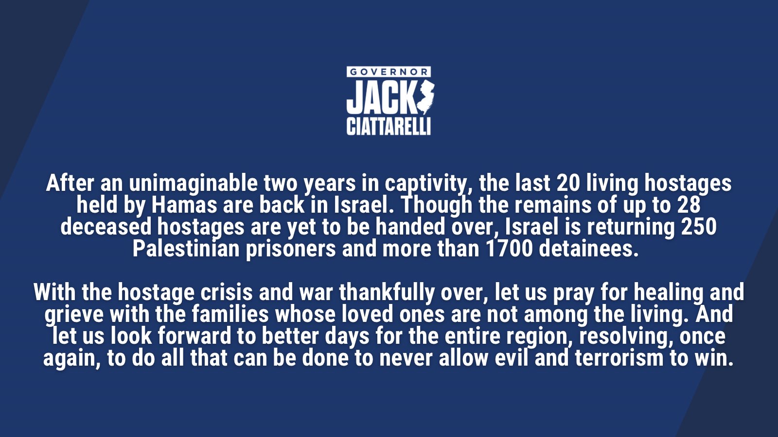 Statement by Jack Ciattarelli on the Release of the Hostages