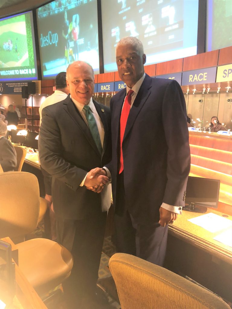 Atlantic City – Senate President Steve Sweeney joined in the inaugural event to launch sports betting in Atlantic City’s casinos when he participated in the opening day activities at the Borgata Casino. The Borgata is the first New Jersey casino to open a sports betting parlor.