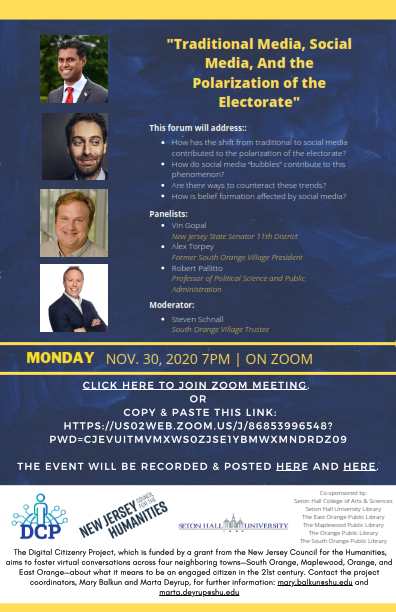 "Traditional Media, Social Media, And the Polarization of the Electorate" November 29, 2020, 12:12 pm | in Zoom Link