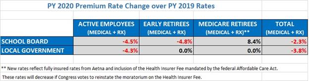 In contrast, 2020 premiums for participating employers are expected to change as follows based on the rates approved today: