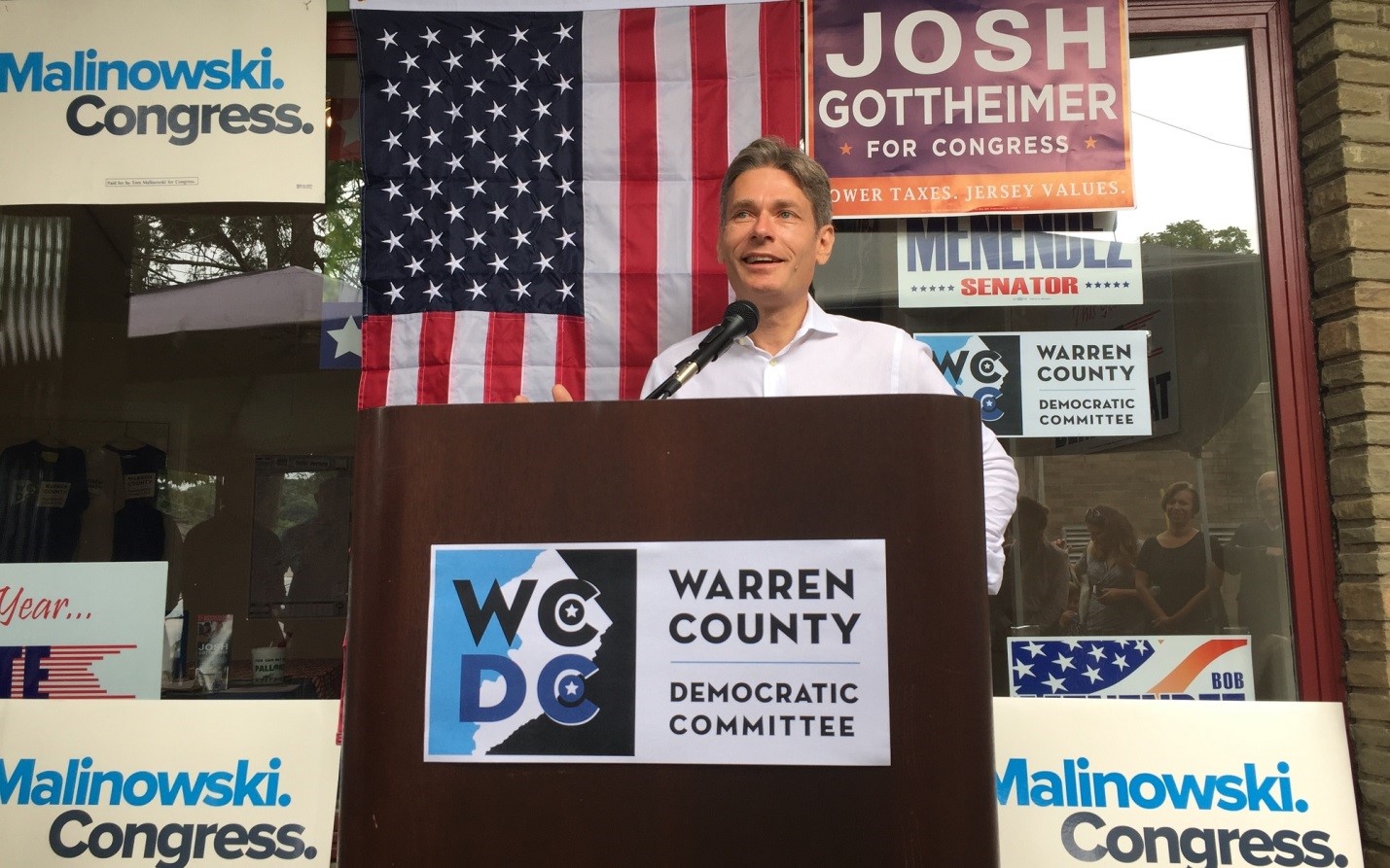 WASHINGTON, N.J. (Aug. 19, 2018) – Congressional candidate Tom Malinowski, Freeholder candidate John Massaro, and an array of municipal office seekers from across Warren County assembled before a gathering of several dozen supporters at the grand opening for the campaign headquarters of the Warren County Democrats in downtown Washington Borough.