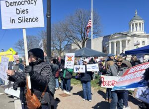 That was the level of discourse in front of the Somerset Courthouse this afternoon at a No Kings Rally.
