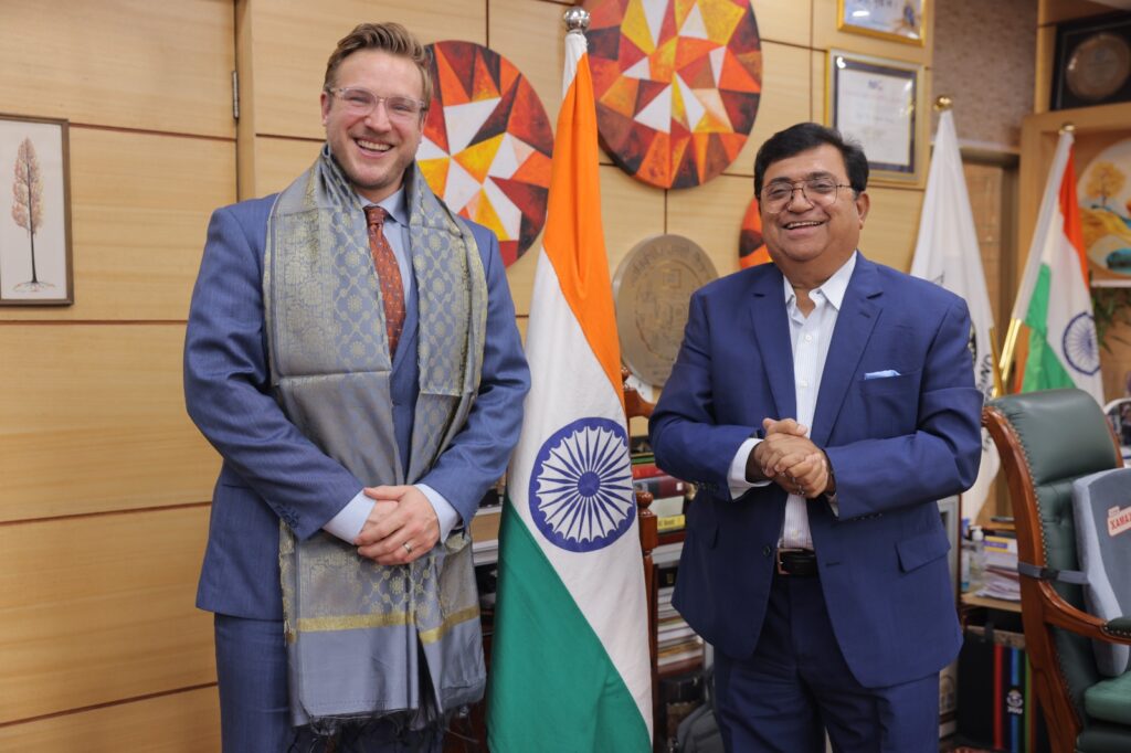 William Paterson University Vice President of Enrollment Management George Kacenga meets with IP University Vice Chancellor Mahesh Verma in Dehli, India during a visit in February 2025. Courtesy William Paterson University
