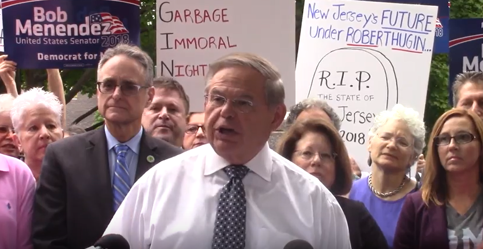 Bob Menendez came here on Friday to trash Hugin's fitness to serve in the U.S. Senate.