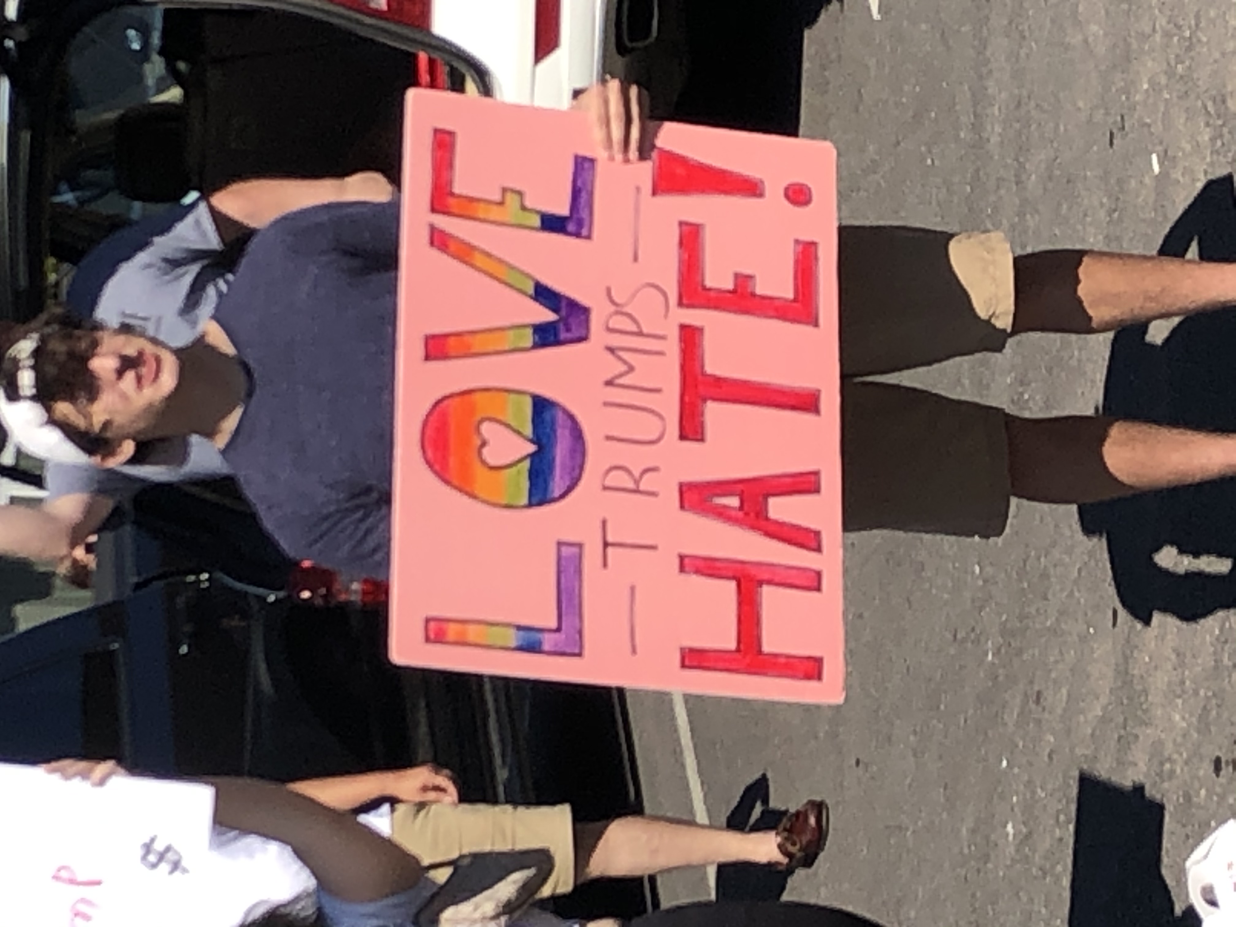Waving signs, some of which were obscene, the group at first set up outside a CVS on South Main.