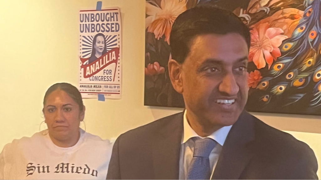 Khanna, a progressive congressman from California and a one time House colleague of Malinowski, popped into an Indian restaurant on Monday to speak on behalf of CD-11 candidate Analilia Mejia.