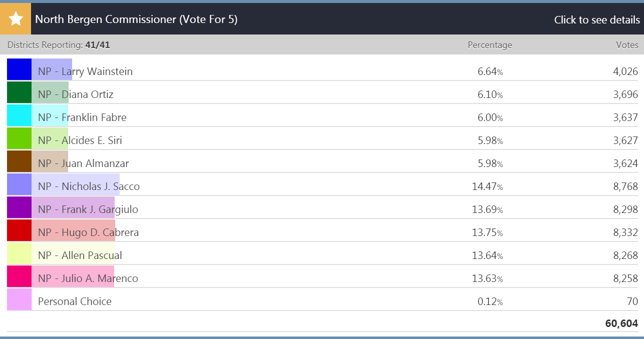 North Bergen Mayor Nick Sacco tonight defeated challenger Larry Wainstein with little difficulty.