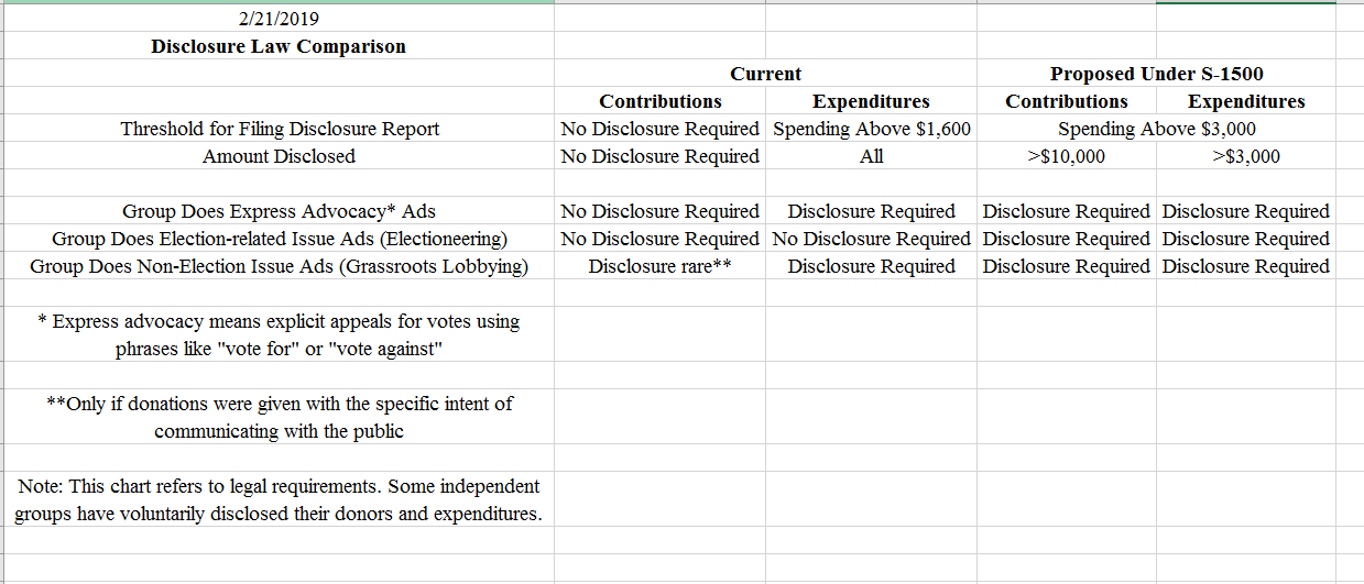 “This reform measure will lift the veil of secrecy that surrounds the actions of organizations working to influence the political process,” said Senator Greenstein. “As candidates, we disclose our donors and expenditures. The disclosure requirements should extend to the groups that are spending to get favored outcomes.”