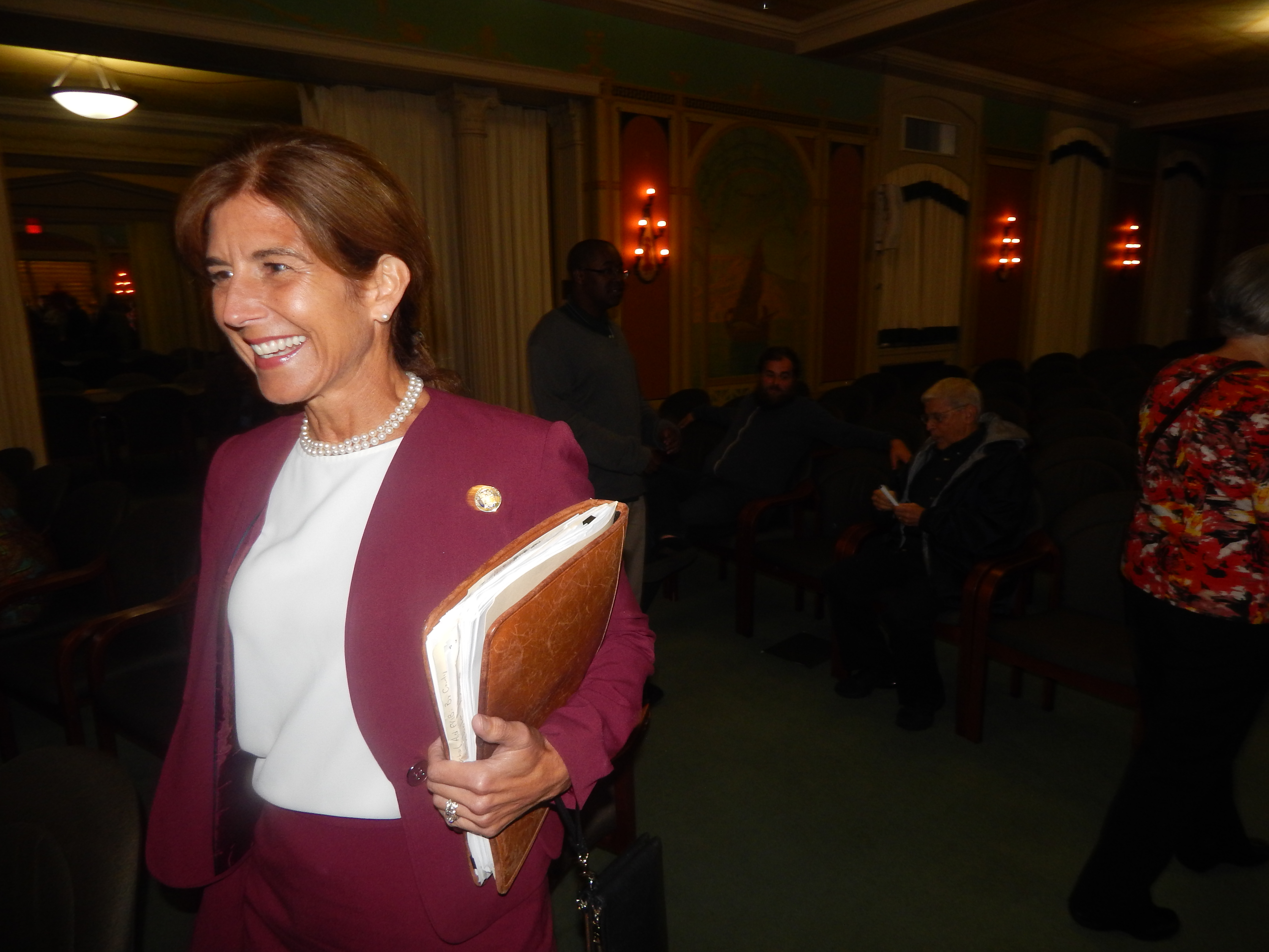 Gopal hadn't been in the subterranean Monmouth University room but five minutes when a familiar figure in high heels appeared on the grand staircase and gingerly descended. It was Beck, Gopal's target in this intriguing battleground race. Impeccable, the senator shook some outstretched hands, and then made her way to the dais, and the extended hand of Gopal. The grinning rivals chattered amiably and elegantly as the basement crowd swelled, among them Gopal's running mates, Assemblywoman Joann Downey and Assemblyman Eric Houghtaling, and Beck's running mates, Rob Acerra and Mike Whelan and assorted Monmouth insiders.