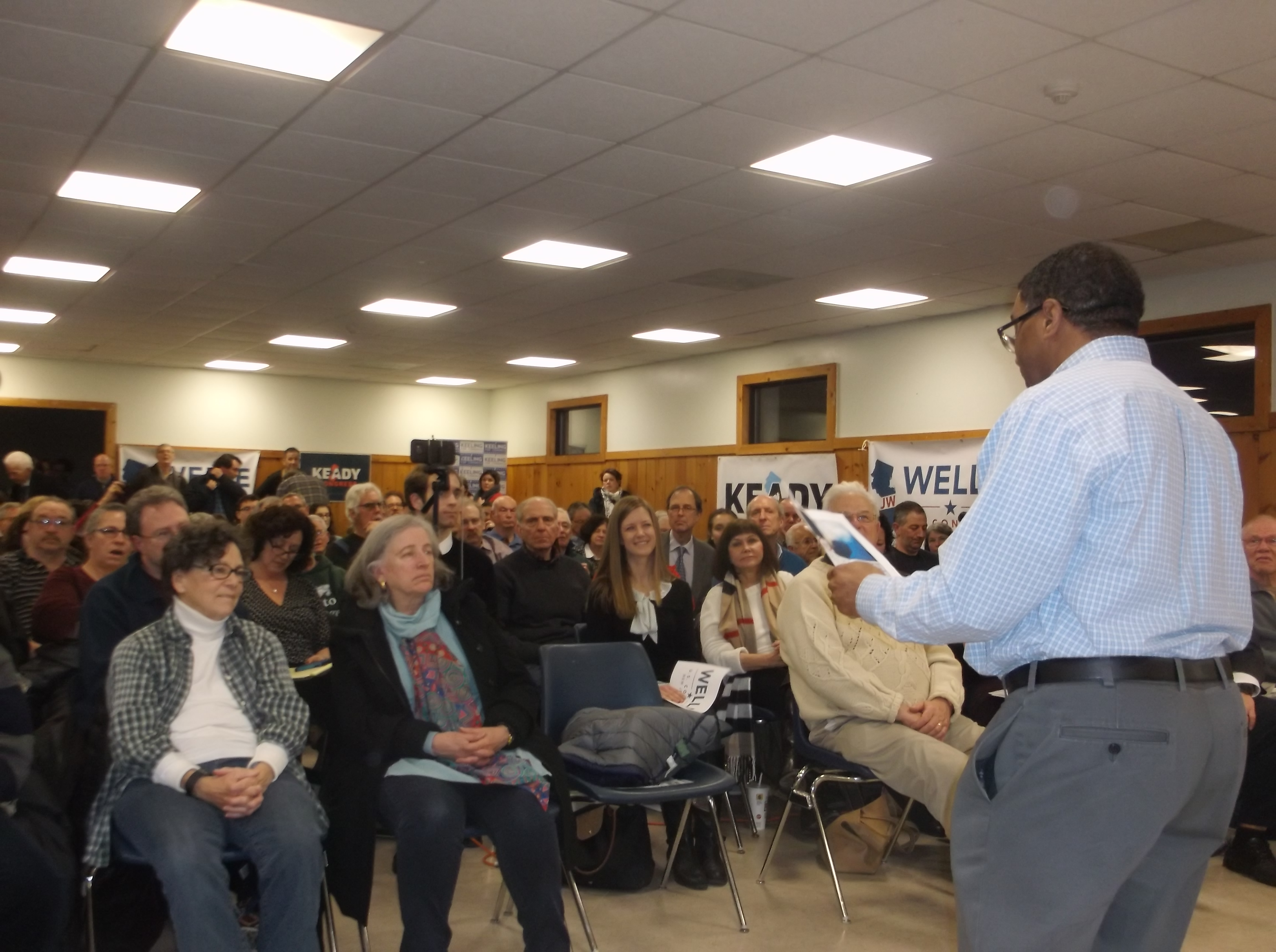 Despite the DCCC's recent designation, most New Jersey political operatives cite CD4's voter history - and Smith's on average 65-35% blow-out of all contenders going back to the 1980s - as exhibit A for Democratic Party overenthusiasm. Exhibit B? Trump's 15-point victory over Hillary Clinton in 2016. Exhibit C? Smith's apparent self-inoculation against Trump push-back with votes against Obamacare repeal (as packaged) and against the Trump Tax Plan, which eliminates state and local property tax deductions and deals a double whammy to most NJ taxpayers. But Keady said he plans to tap those reserves of previously uninspired district Democrats and independent voters by running an unapologetically people-power driven campaign. The Navy veteran Welle, who last night told a story about how as an officer he improved barracks conditions for his sailors, stuck to his commitment to being a better representative for veterans than the highly veterans'-rated Smith.