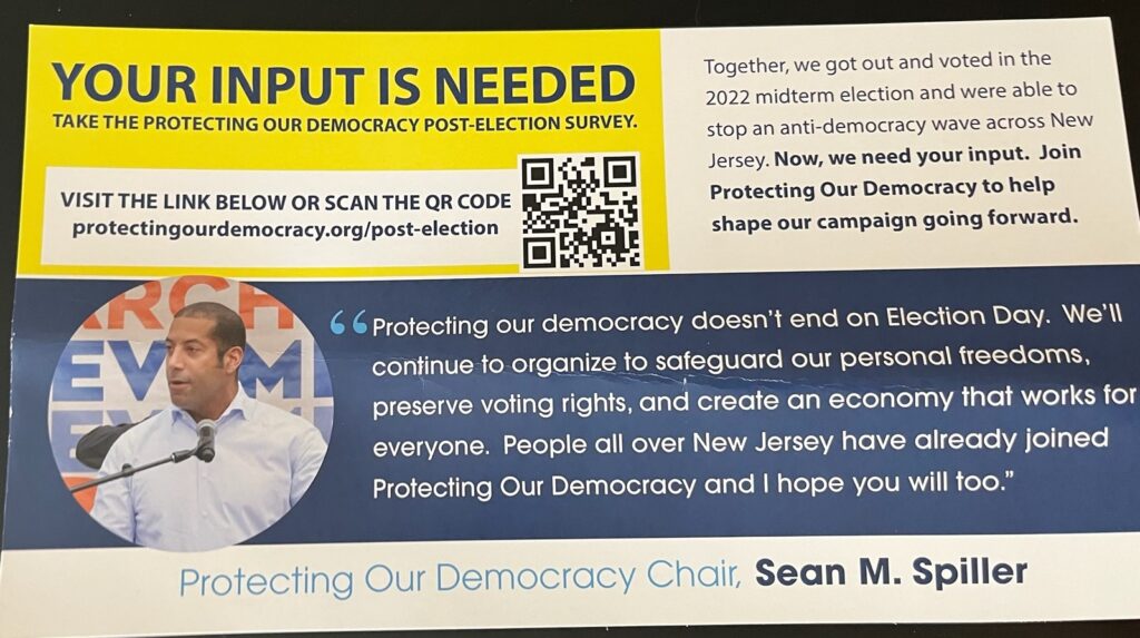In any event, he has accelerated the process of making his face seen statewide, causing the insider class out there - if they hadn't already - to draw conclusions about Spiller's ambitions as he undertakes to "protect our democracy [which] doesn't end on Election Day [see mailer above]."