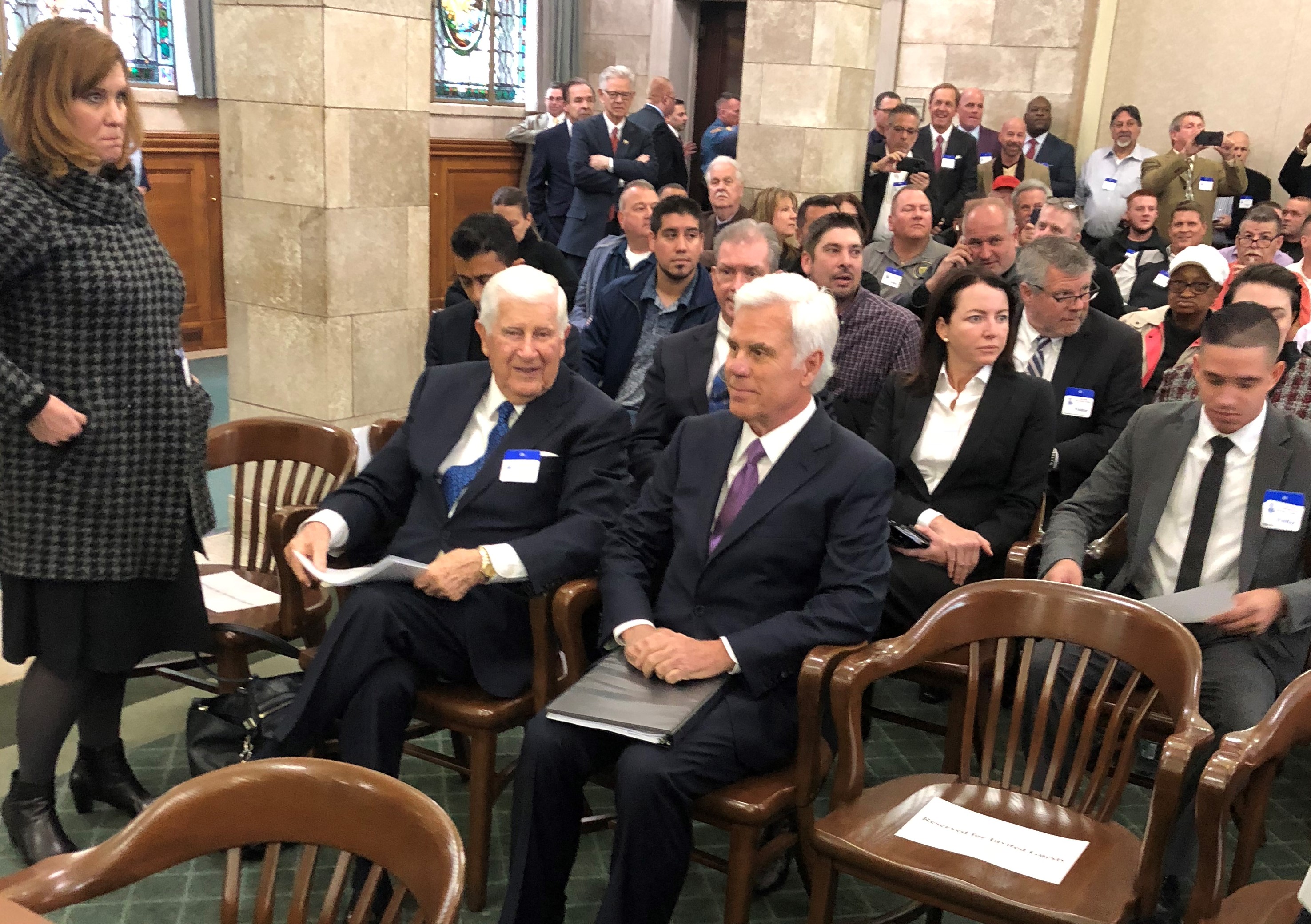 Jeers ensued and Smith - who had warned about loud and inappropriate behavior at the start of the hearing, told officers to boot people lined up along the entire back wall of the hearing room.