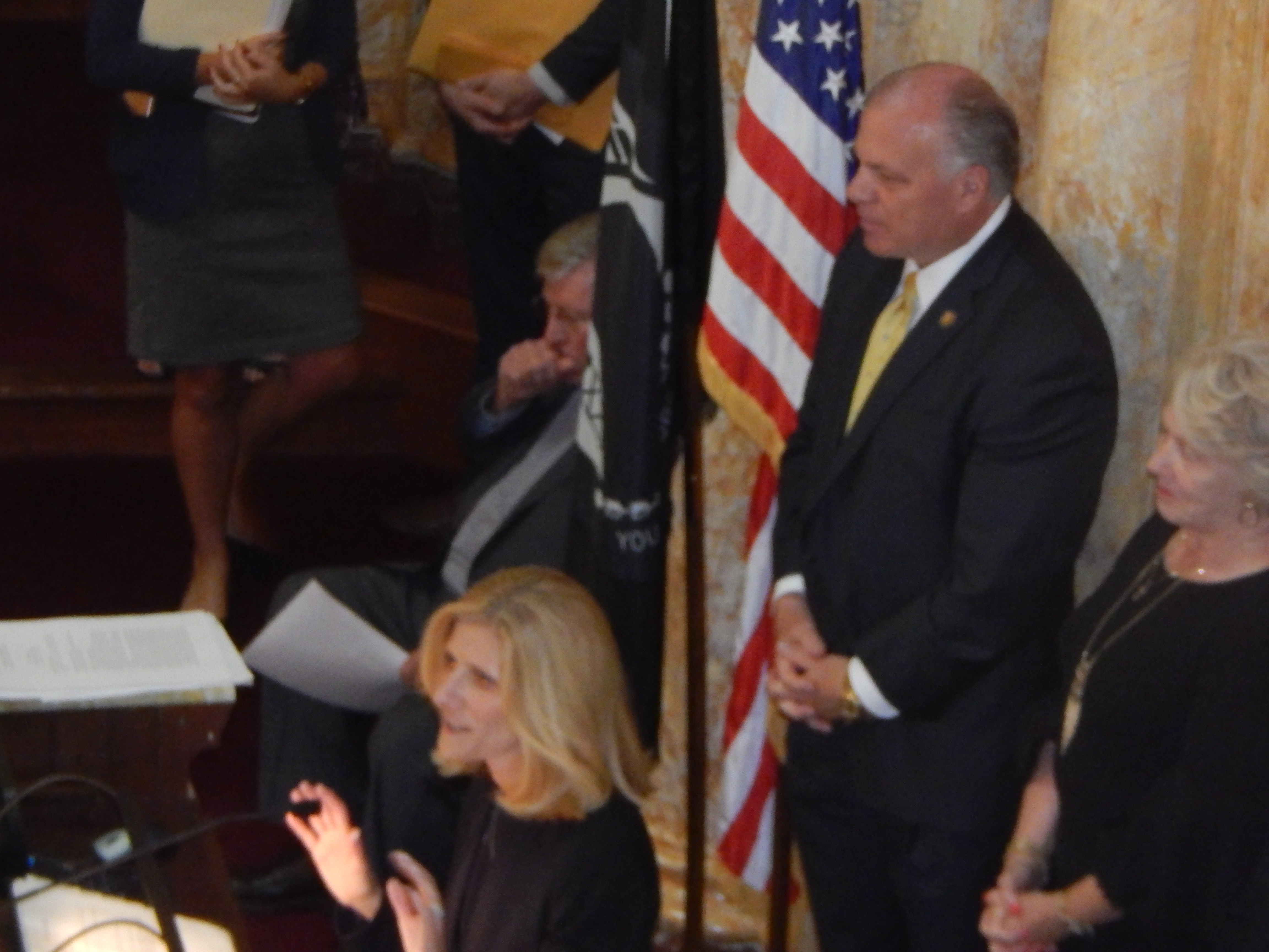 InsiderNJ caught up with former Governor Dick Codey as he sauntered down the marble staircase to make his entrance into the session just moments before Corrado and Bell got sworn in by Sweeney. "I'm not bitter," he said cheerily, the apparent imminent victory of Murphy dancing like sugar plum fairies in the Irish American's eyes.