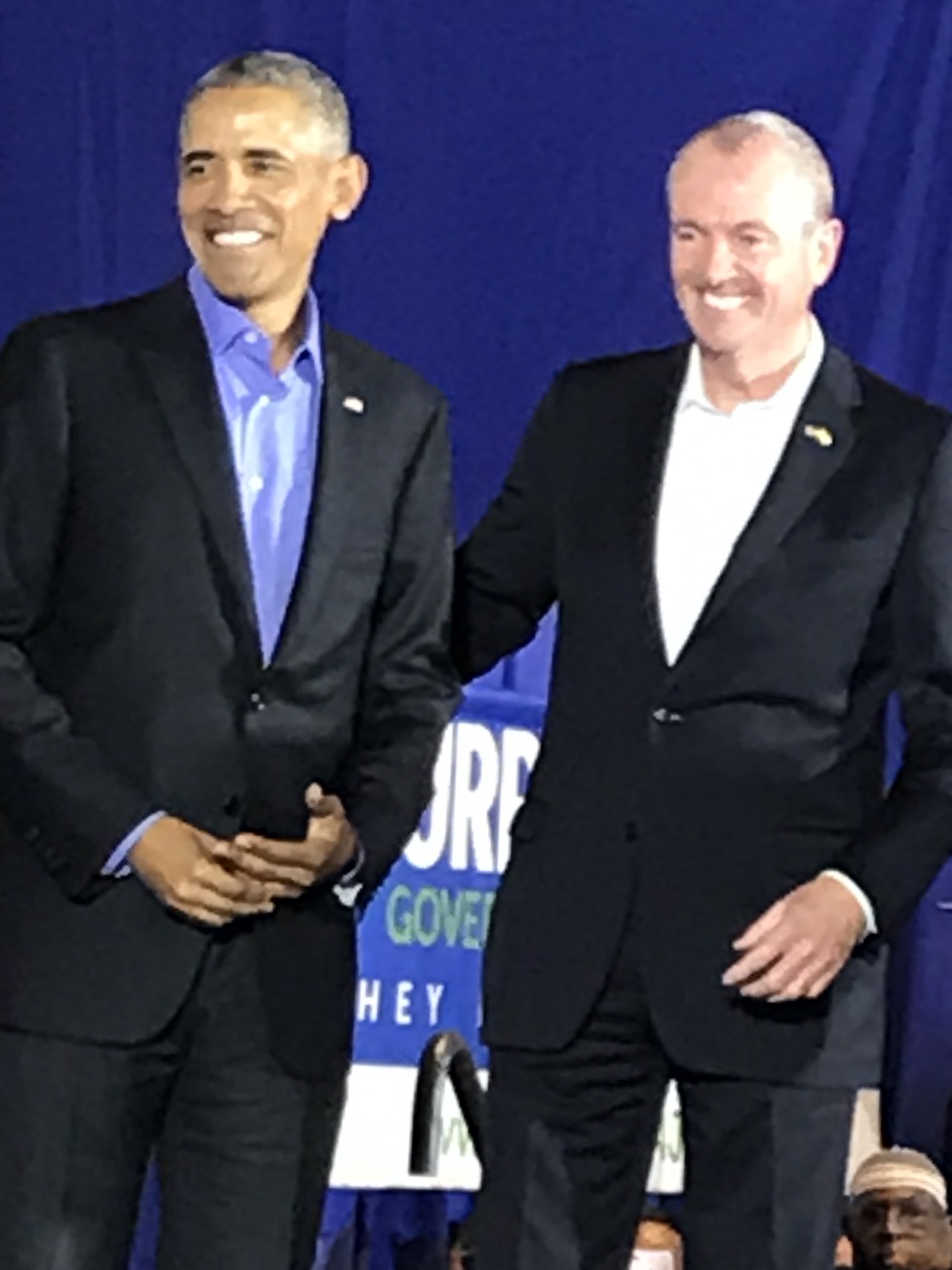 "How cool is this, folks, huh?" Murphy asked at the Robert Treat in Newark as he bounded onstage next to the former United States President. In his first public appearance on the campaign trail since leaving the presidency last year, Obama joined his former Ambassador to Germany and a host of Democratic Party insiders as Murphy tries to put away Republican gubernatorial candidate Kim Guadagno.