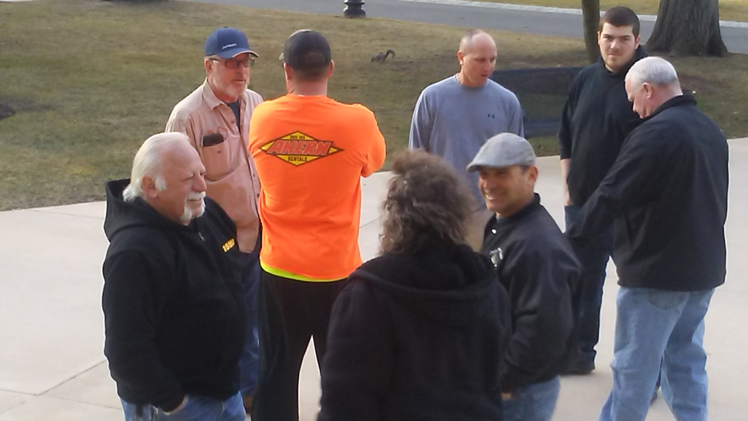 Try as they might to protect stately seriousness, an ineradicable statewide political competitiveness between senate president and governor (and Building Trades and Public Sector Workers) intensified the overflow scene. "I hope you brought your boxing gloves," said an absolutely game-faced Bill Mullen, president of the New Jersey Building Trades, as he walked into the room with labor types over both shoulders flowing into the room.