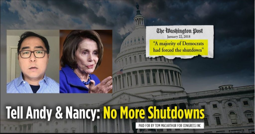 The MacArthur for Congress campaign launched a digital ad buy slamming Democrat Andy Kim over the government shutdown, saying he failed to stand up to congressional Democrats, according to a release from the campaign. The shutdown resulted in withheld pay for military and employees of Joint Base McGuire-Dix-Lakehurst in the district.