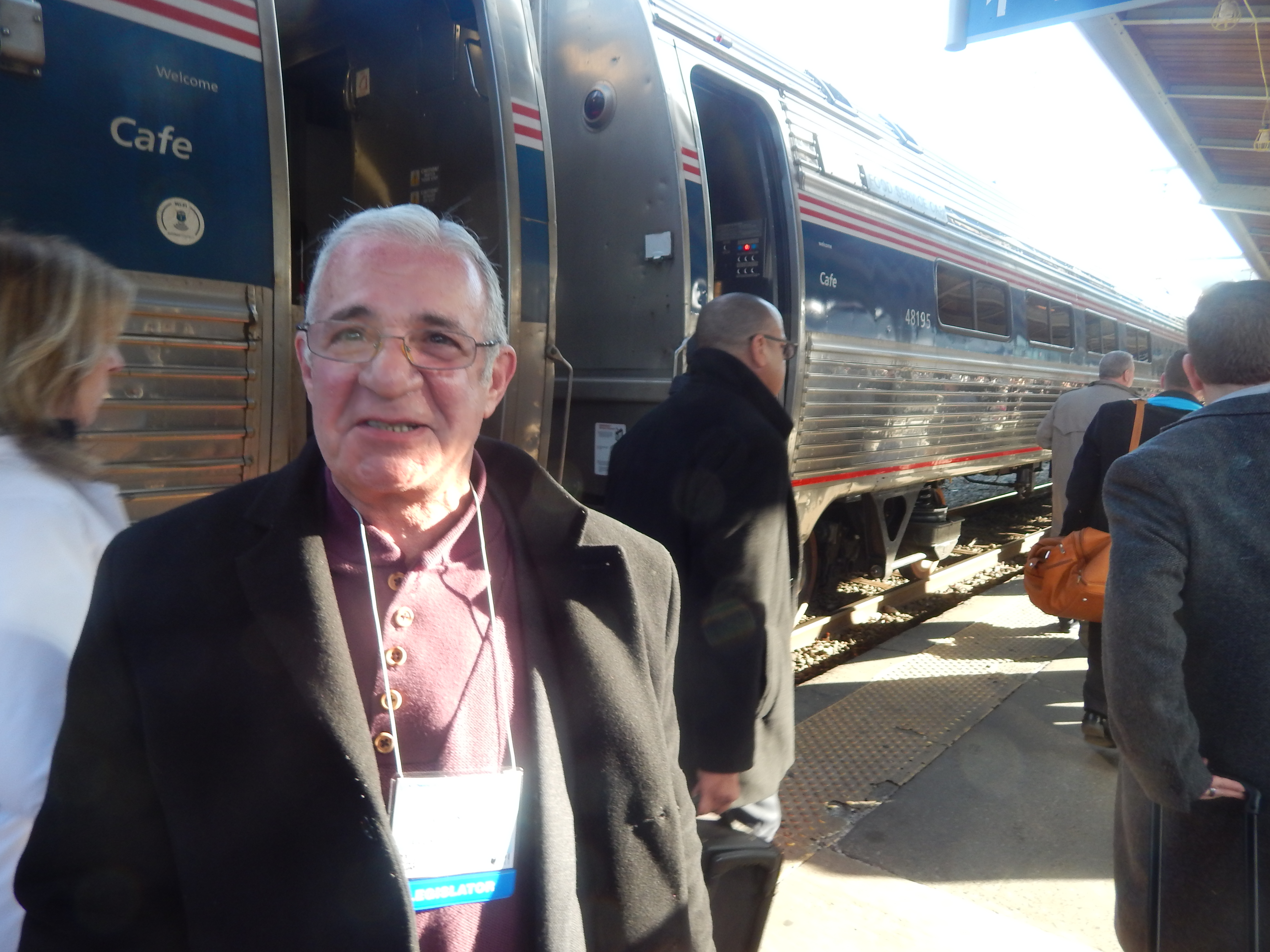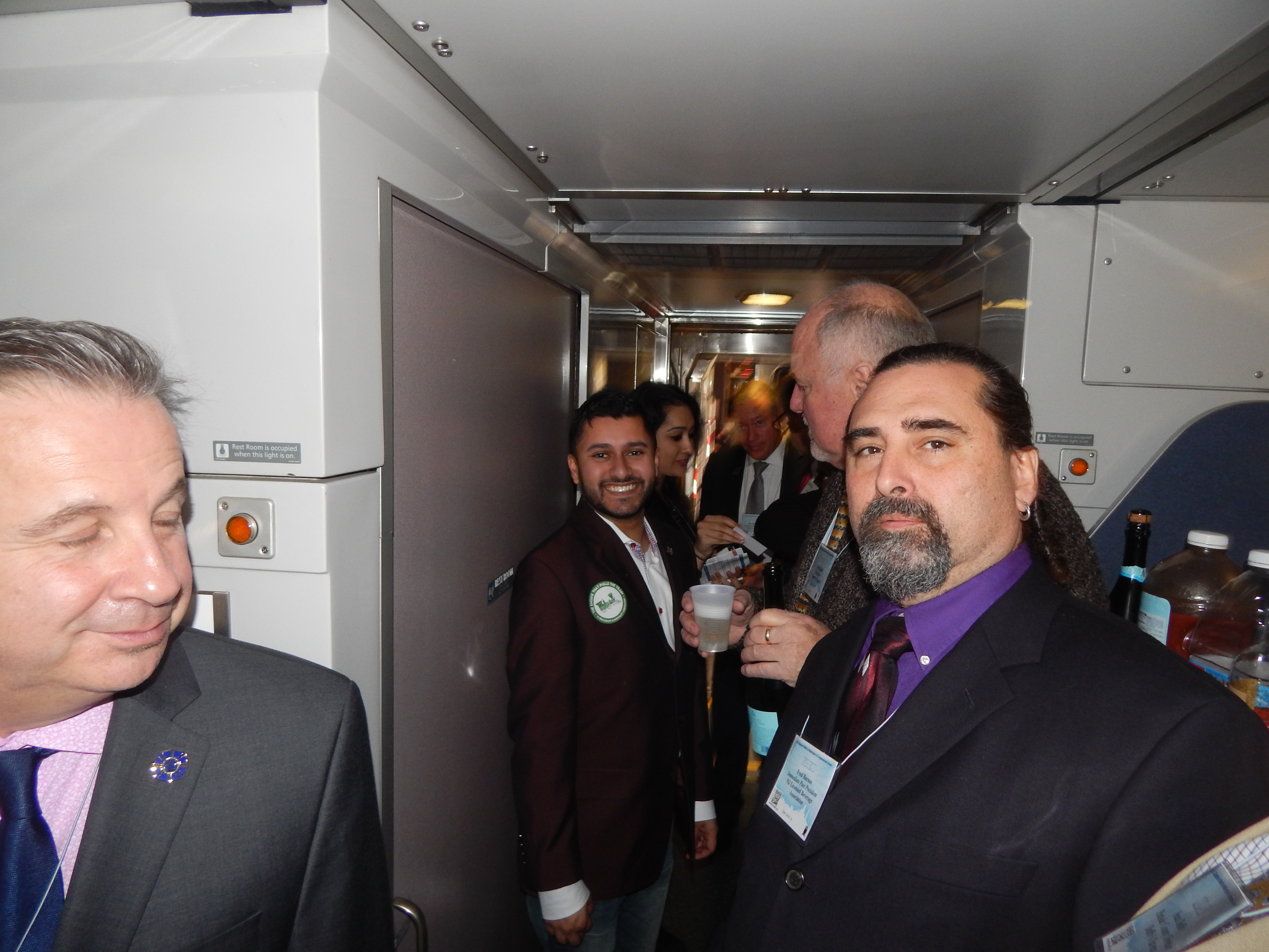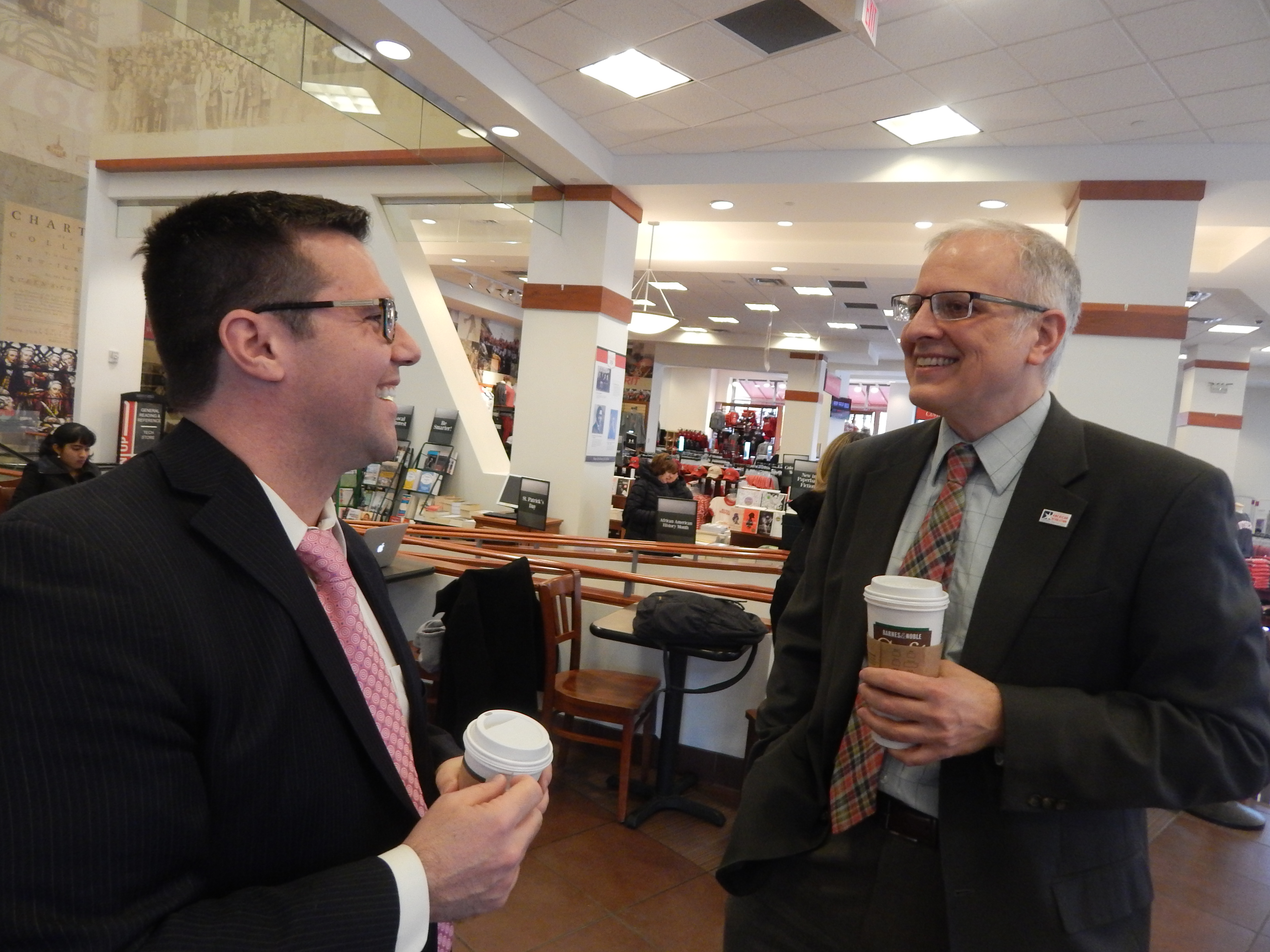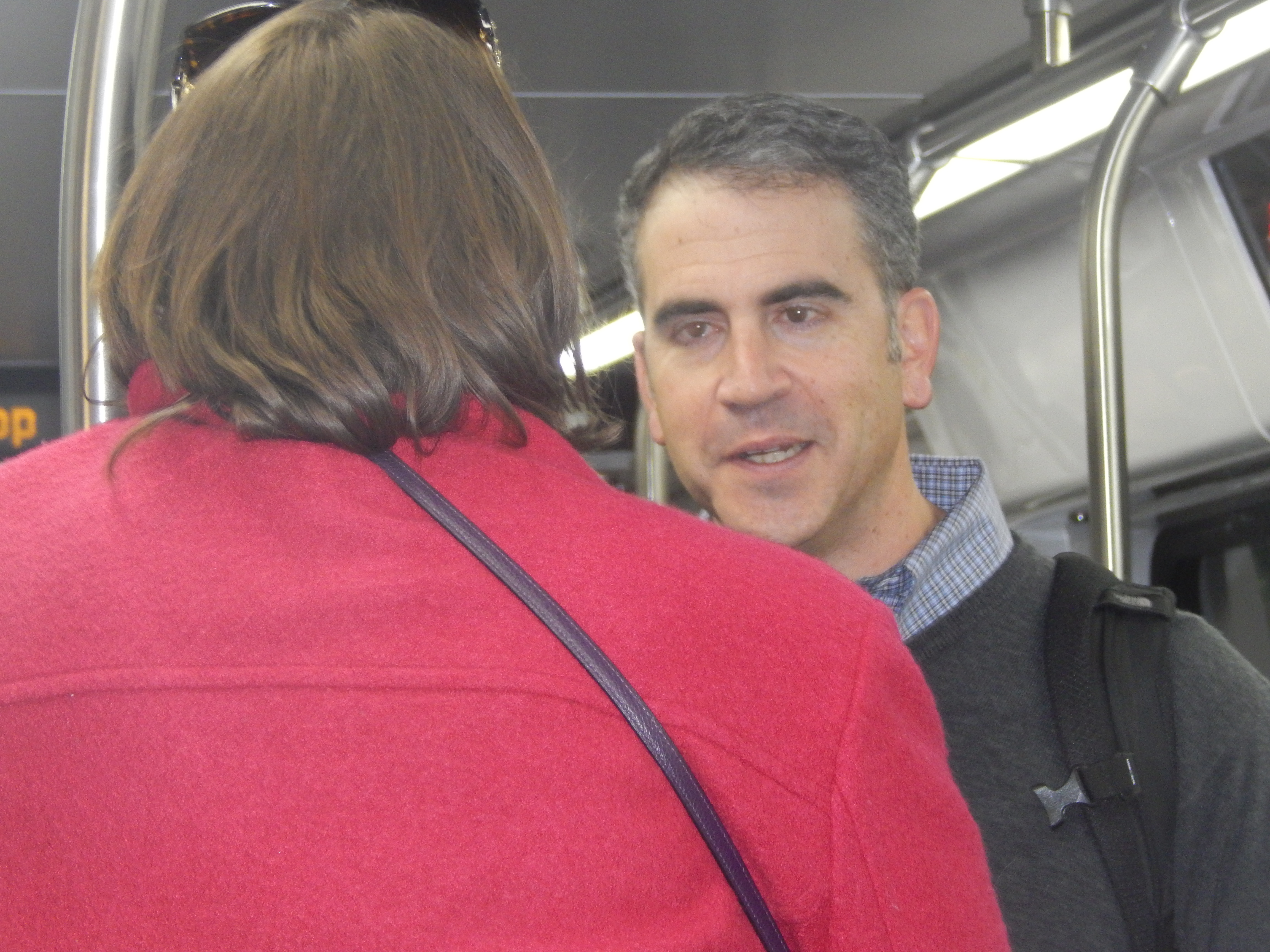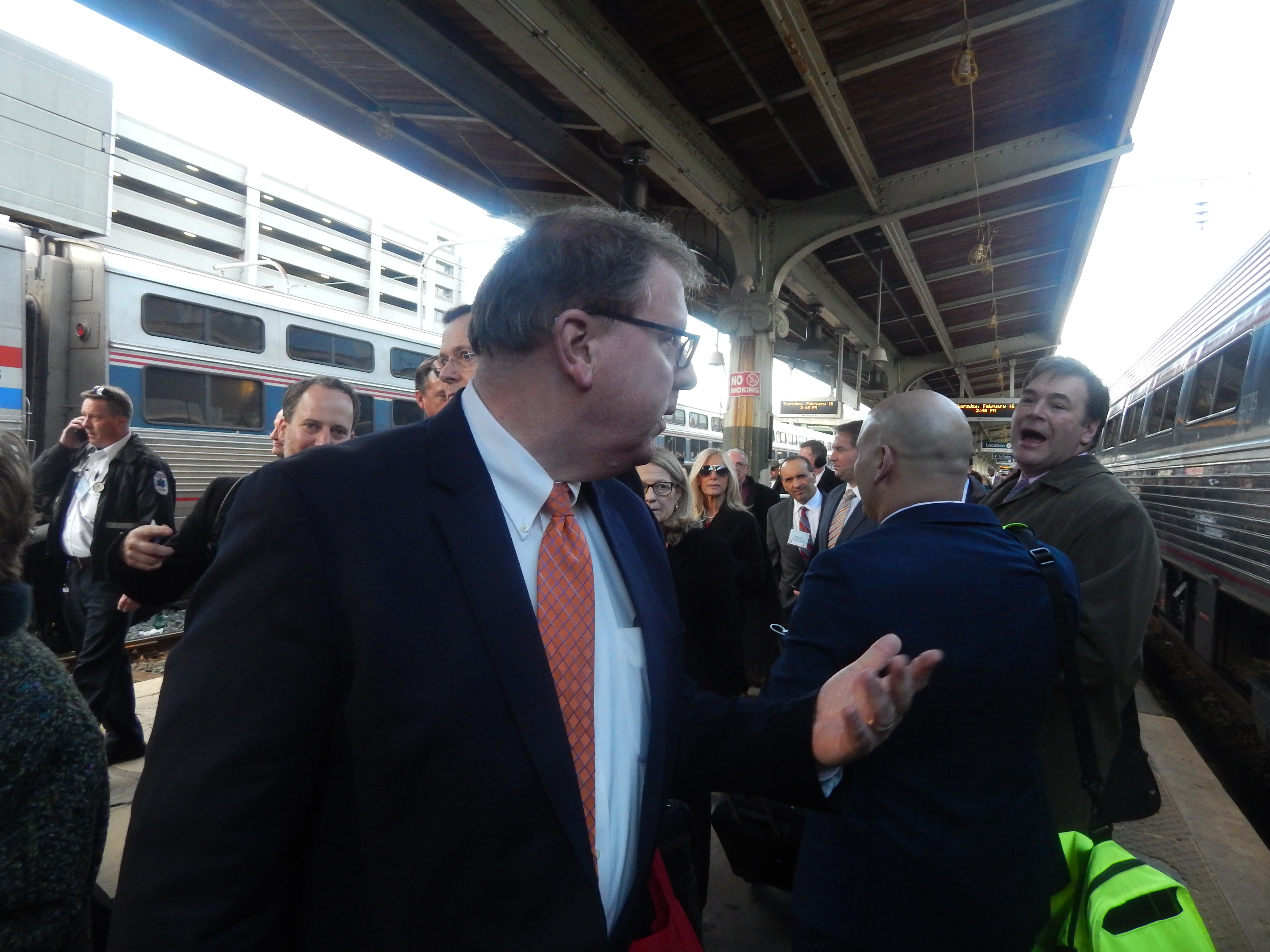 Ed Potosnak of the League of Conservation Voters, left and Monmouth University Pollster/Political Scientist Patrick Murray were absorbed in a conversation about politics, they almost missed the train in New Brunswick.