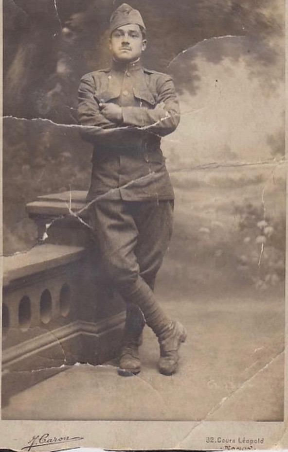 Finally, in the photo immediately above, you see Grandma Helen and Uncle Freddy’s father, Angelo DeCiccio. The photo was taken in Nancy, France just days before he was mustard gassed in the trenches by the Germans during the Meuse-Argonne offensive in World War I. He had been drafted by the Army just months after becoming a US citizen. Talk about timing!