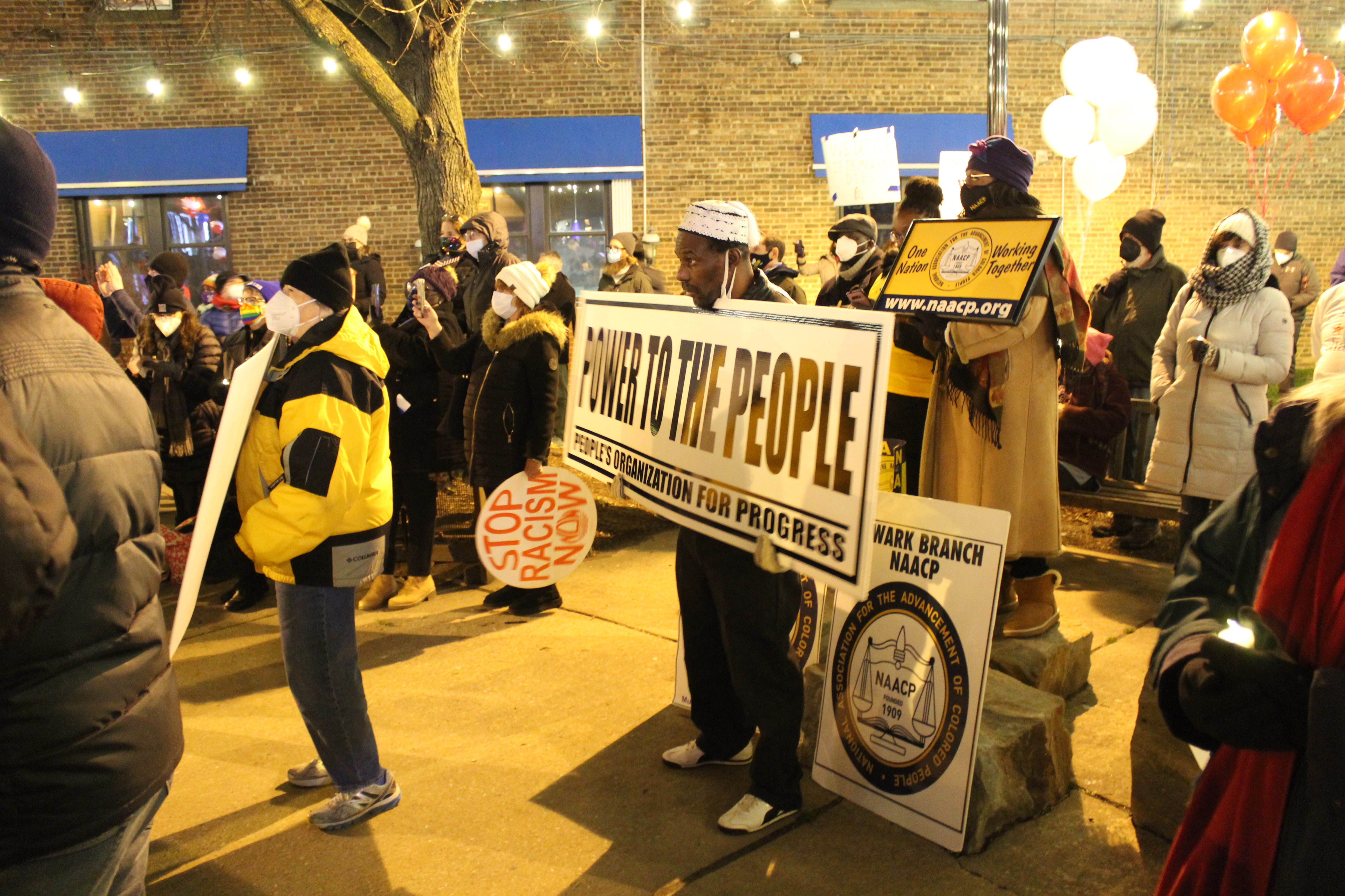 Sue Altman of NJ Working Families served as the event’s emcee, which brought speaker after speaker to address the audience, many of whom carried signs both homemade and professionally printed. Battery-powered candles were being handed out, clutched in the gloved or half-frozen fingers of the faithful, while literature was passed to the participants. SOMA Action flyers urged people to contact Senators Booker and Menendez to “do whatever is necessary to end the filibuster” and advance the Freedom to Vote Act, the John Lewis Voting Rights Act, and the Protecting Our Democracy Act.