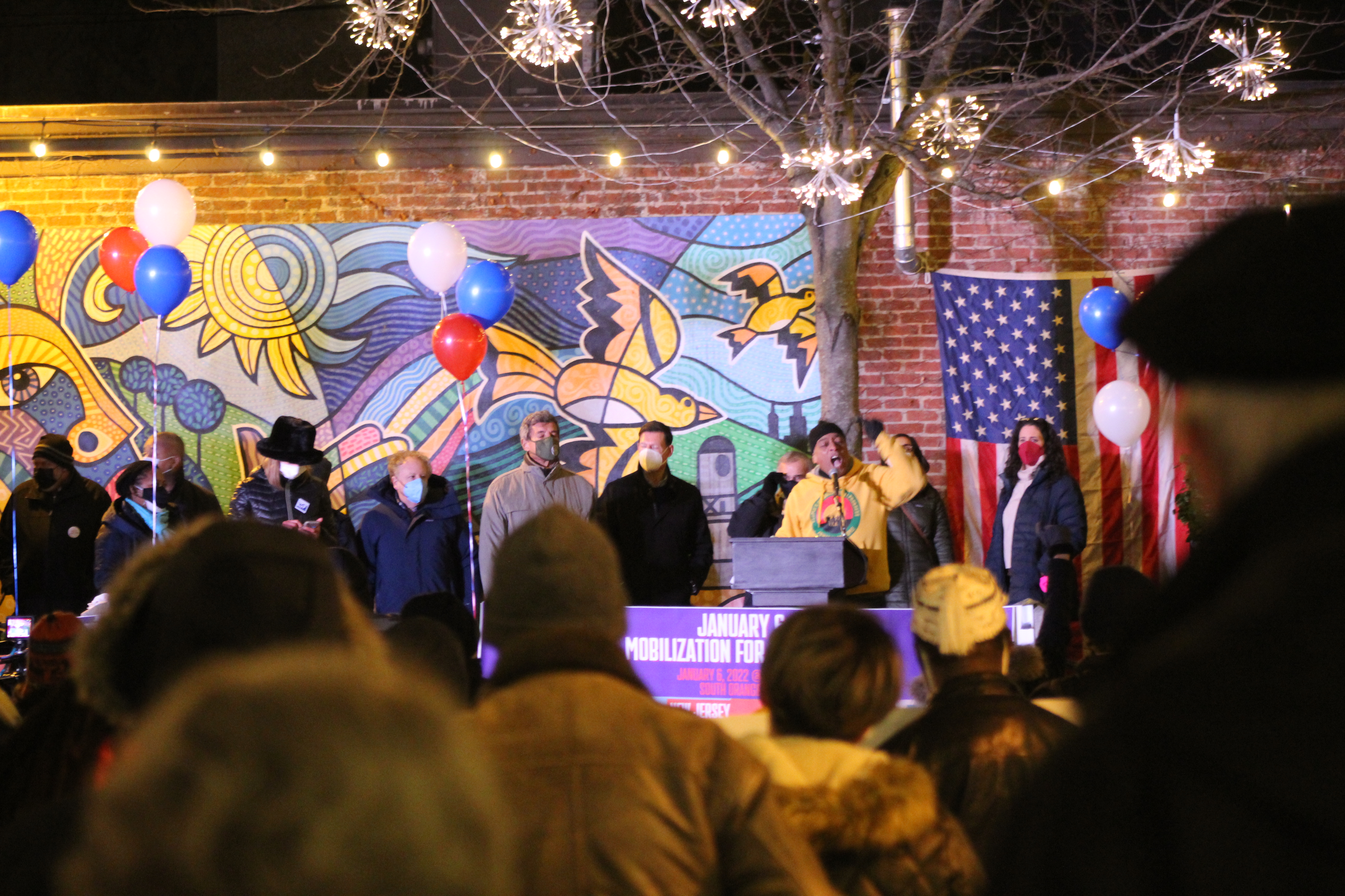Baraka said that calling for democracy to be protected was more than simply voting. “Why are we still fighting, even today, for the very things we are supposed to have anyway? We support democracy, but what the heck is democracy? Some of us believe in our ability to go pull a lever, push a button, write our name on a piece of paper. Democracy is our ability to shelter the vulnerable, to give voice to people who don't have a voice at all, to be able to feed people who go without food. Democracy is our ability to include all of us, our race, our language, our religion, what we believe, who we love, where we originate, and how well or bad our actions are. To ensure that we have access to quality education, no matter our zip code, that we're able to get a decent education, no matter where we live, or who our mothers and fathers are. That is what democracy is about!”