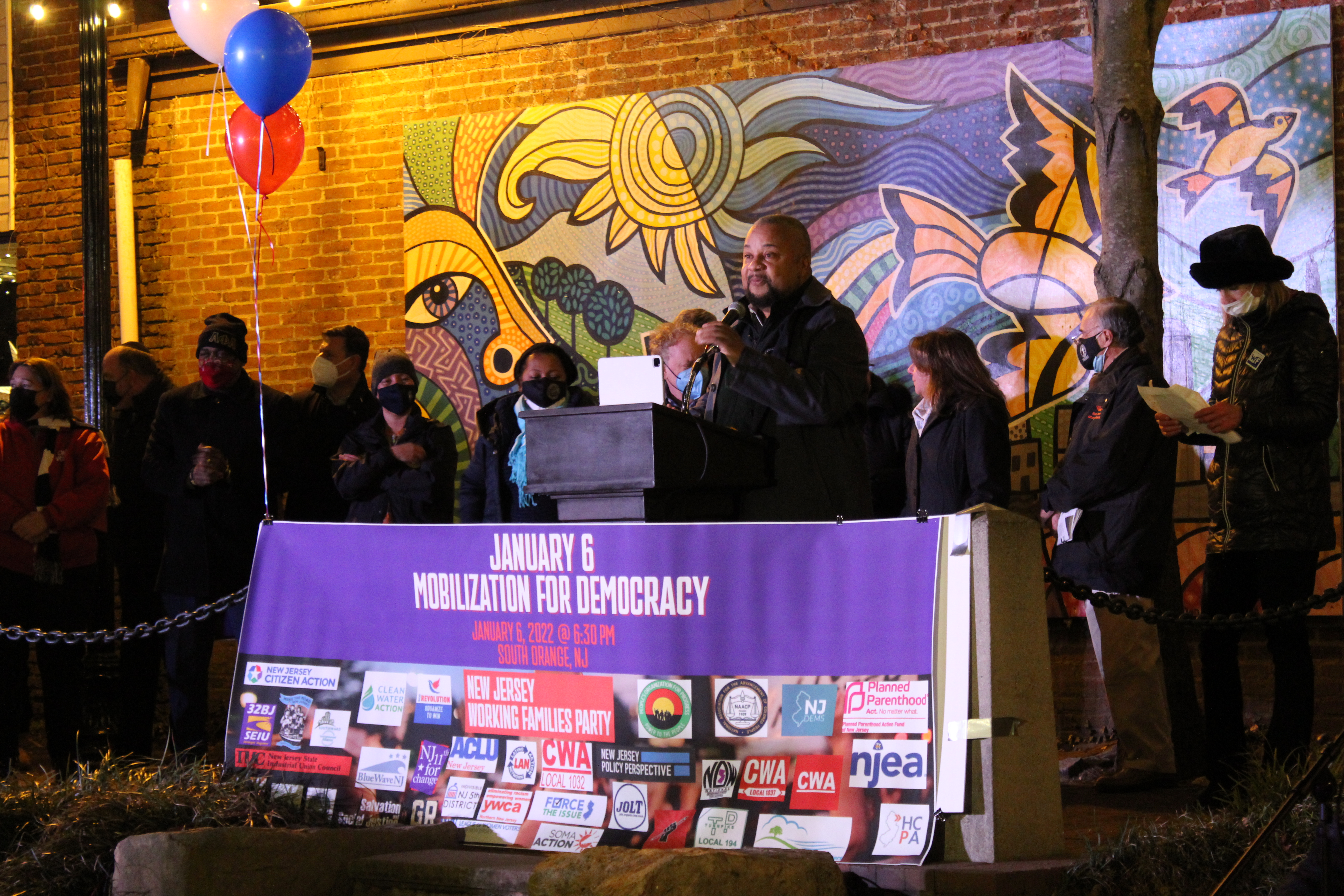 Newark Mayor Ras Baraka spoke, calling January 6 Eugene Goodman Day, in recognition of the African-American Capitol Hill police officer whose efforts saved the lives of many federal lawmakers inside the Capitol Building. Baraka hailed Goodman’s efforts, defending a democracy which did not fulfill its promises to African-Americans’ past. “These people who invaded the capitol that day, a lot of us like to give credit to Donald Trump. Donald Trump is just a figurehead. He's a distraction. In fact, while we were focused on Donald Trump, they were stealing our voting rights. When we were focused on Donald Trump, they were peeling back LGBTQ rights… they were revising history in school and so they got to a point where they were big enough and proud enough to say, ‘we don't even want to teach it at all’. We were focused on Donald Trump, they were making sure we didn't tax the millionaires, they were giving breaks to the big companies, the pharmaceutical industry. While we were focused on Donald Trump, they put together a plan to invade the Capitol and the world watched democracy in peril on January the sixth.”