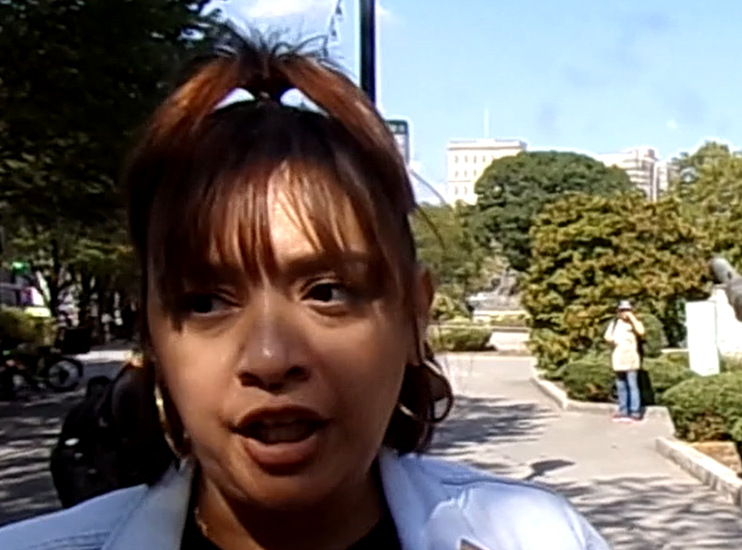 NEWARK - In Military Park this afternoon at a labor rally for security guards, union worker Celeste Fernandez of 32BJ SEIU made her feelings known about President Donald Trump.