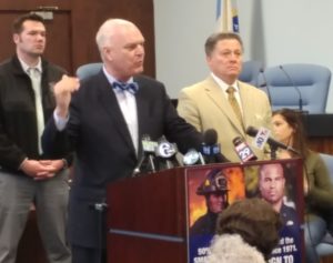 St. Patrick's Day, when they drove the snakes out of Ireland. And we need to rid us from the venom in Trenton. This is a fight against the Governor and the state. In 2014, he had a summit with business leaders here on Atlantic City. We sat and listened for two hours. His response was spitting out his hatred for Atlantic City's police and fire. Look it up and you will see the hatred spewing out of that man. He claims this is a city of 40,000 people. He should come to the Borgata one weekend. There are 160,000 people in Atlantic City at any given time." He took note of the upcoming gubernatorial election (he shared with Insider NJ who he supports): "There's light at the end of the tunnel. Come January this Governor is gone," as the crowd erupted in approval.