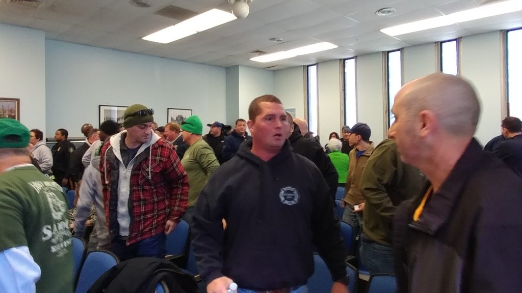 Matt Rogers, head of PBA Local #24, said "Jeff Chiesa said no one would show up. If you look at the overflow crowd, it's clear he knows nothing about Atlantic City. The last thing we want are lawsuits. We offered concessions