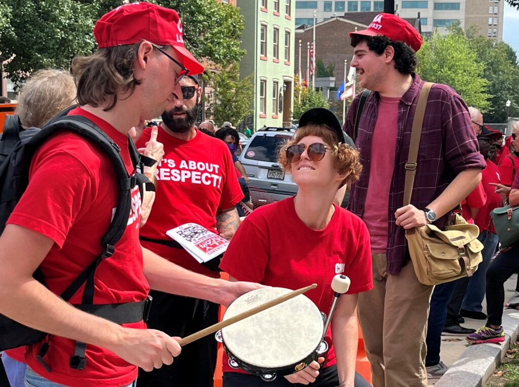 As hundreds of public union workers clad in identifying shirts of different colors demonstrated outside the Statehouse today, Demuynck, a shop steward of CWA Local 1037, said he was confident the sustained and often noisy display would do some good.