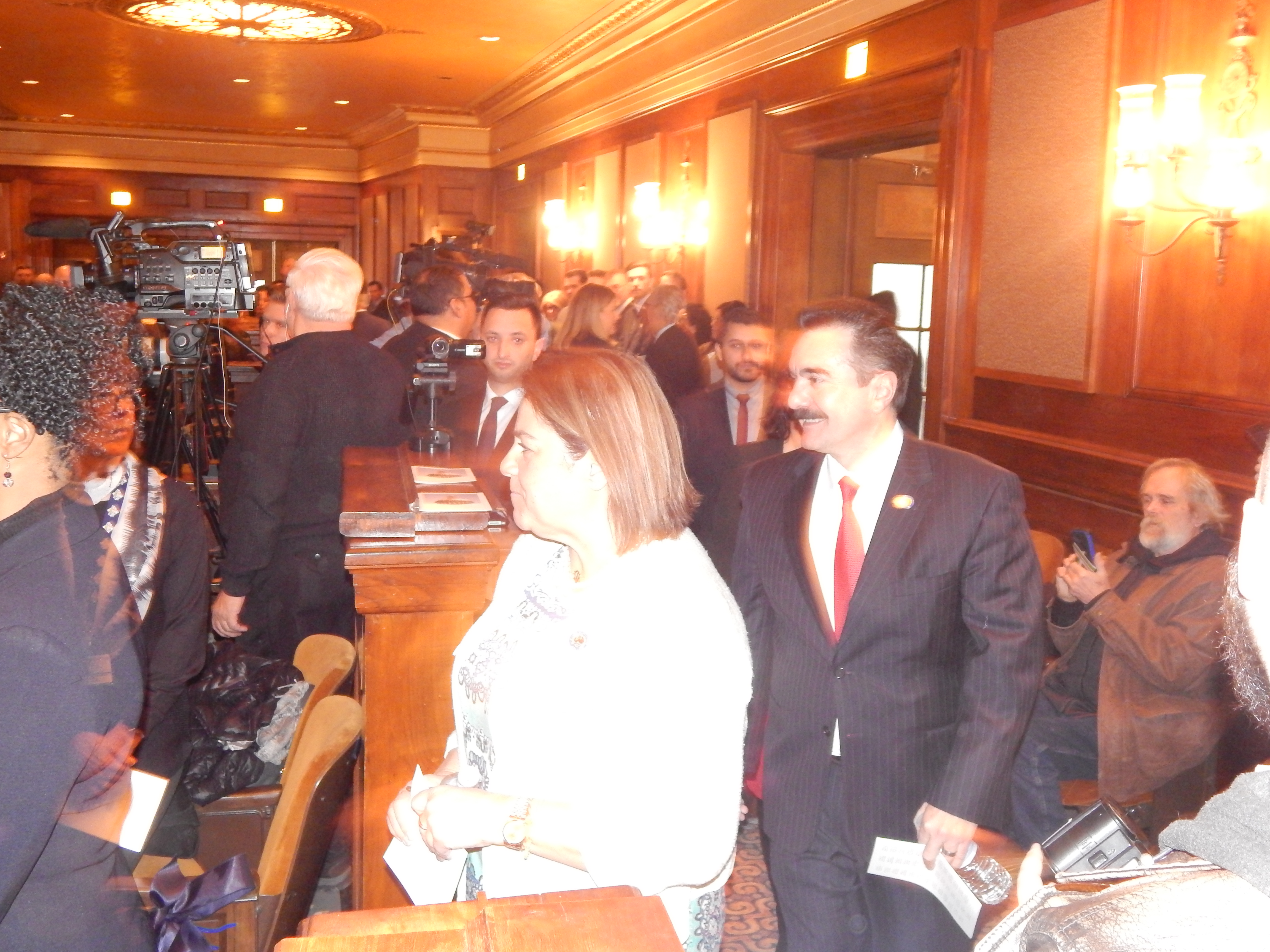 Assemblyman Vincent Prieto (D-32) is all smiles on his way in to the War Memorial and the Coughlin denouement.
