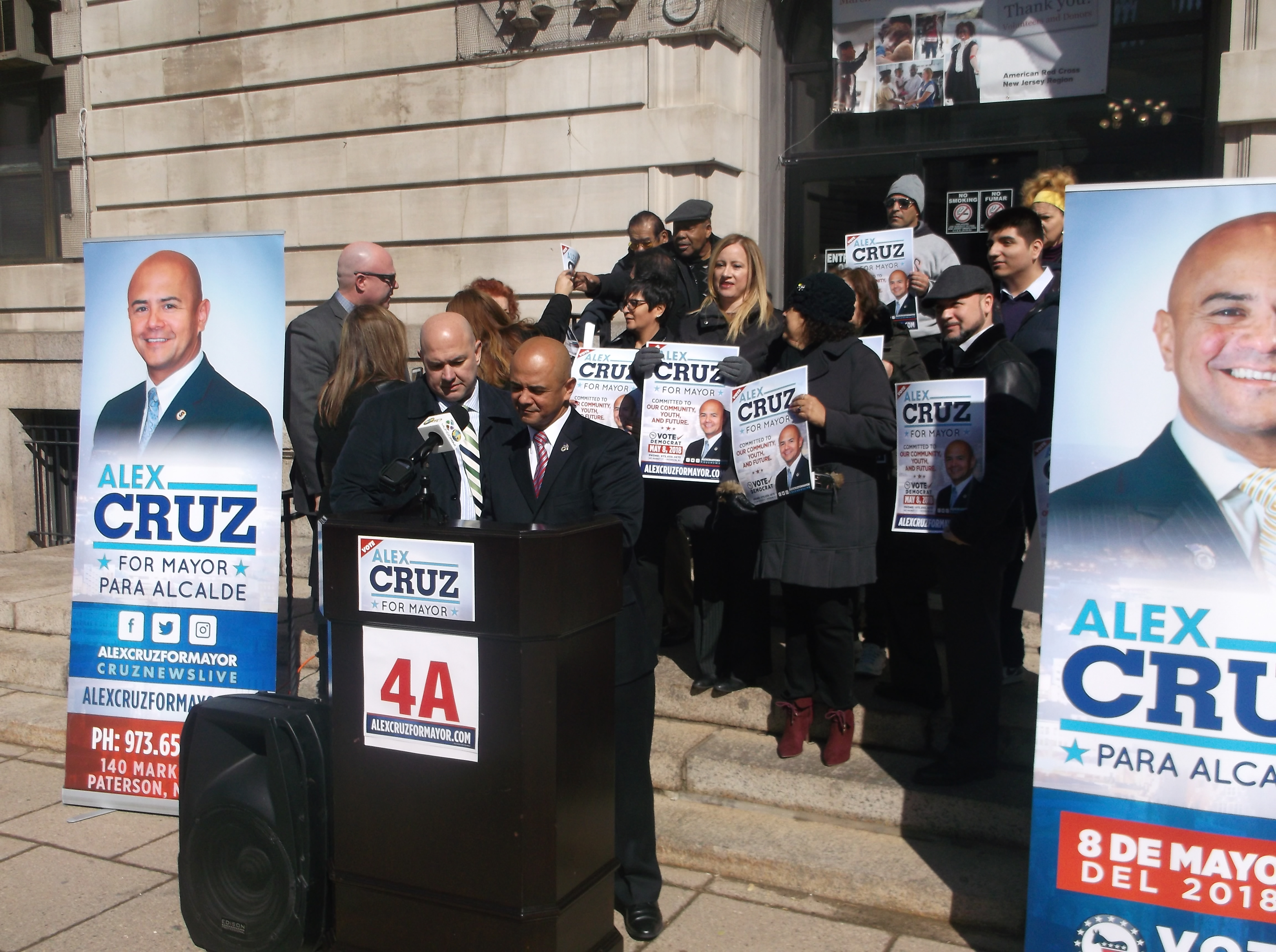 "My name is Alex Cruz," the candidate declared, flanked by allies on the steps of City Hall. "I am a