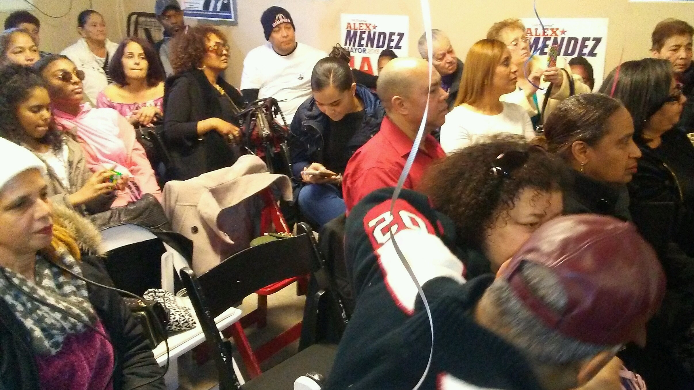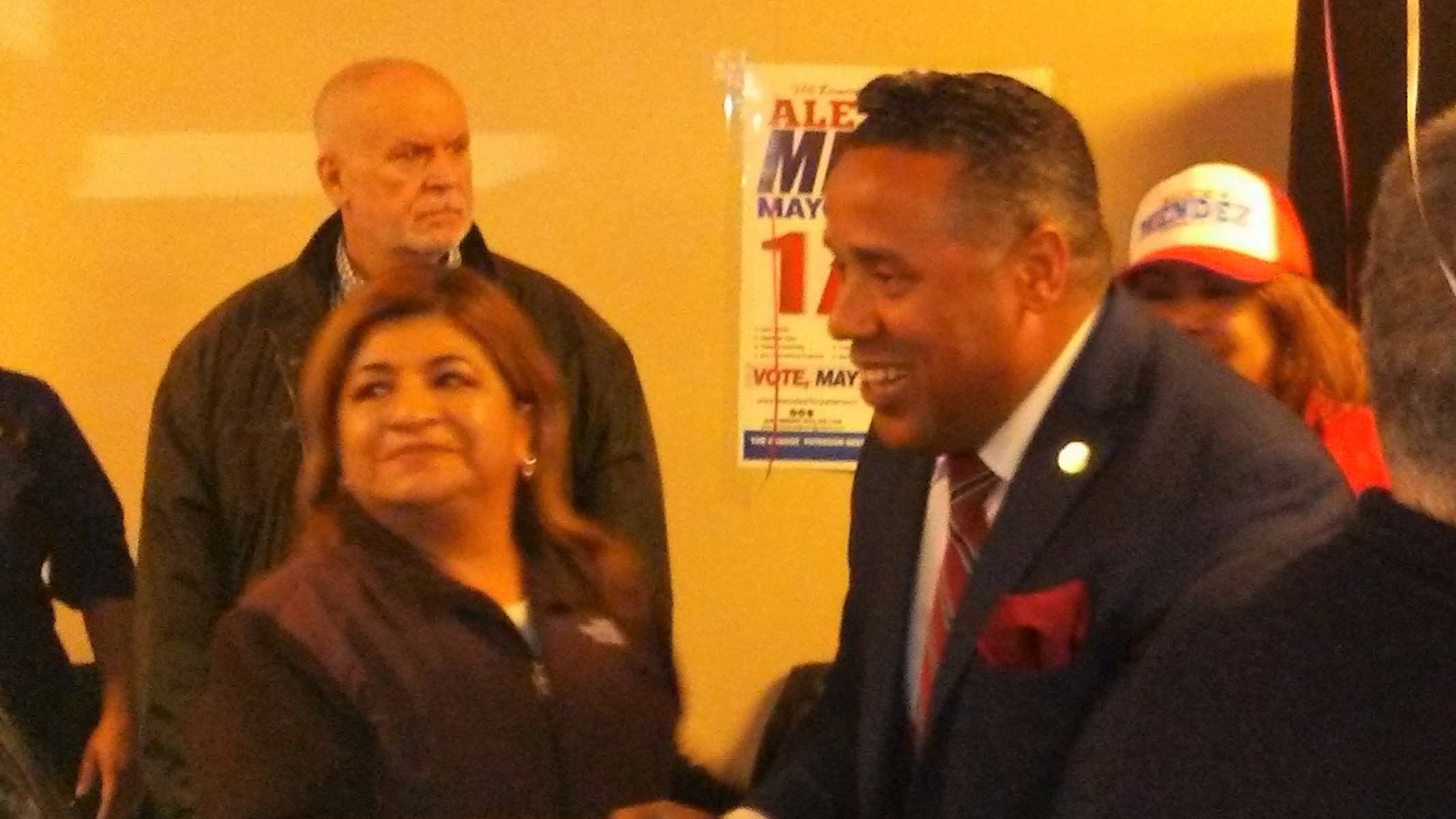 "I've been fighting against those tax increases that are taking our kids and our families outside the city," Mendez - standing with his wife - told an upbeat audience. "I've been elected for nine years working for our community. Now you hear a lot of comments from some of those opponents who say, 'Don't worry. Mendez doesn't have any money.'