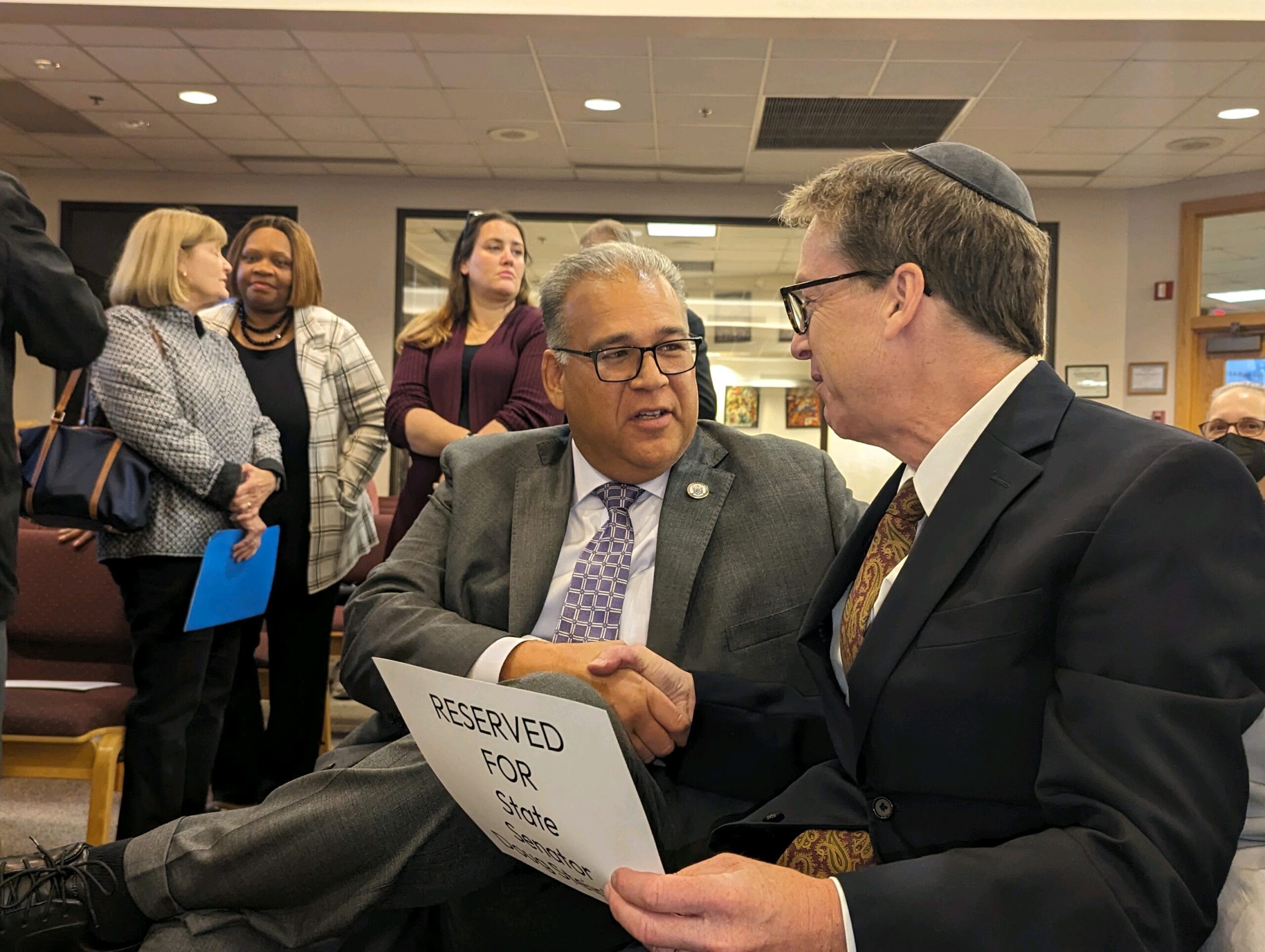 A member of Temple Beth-El, Assemblyman Roy Freiman (D-16) (pictured, above right, with Senator