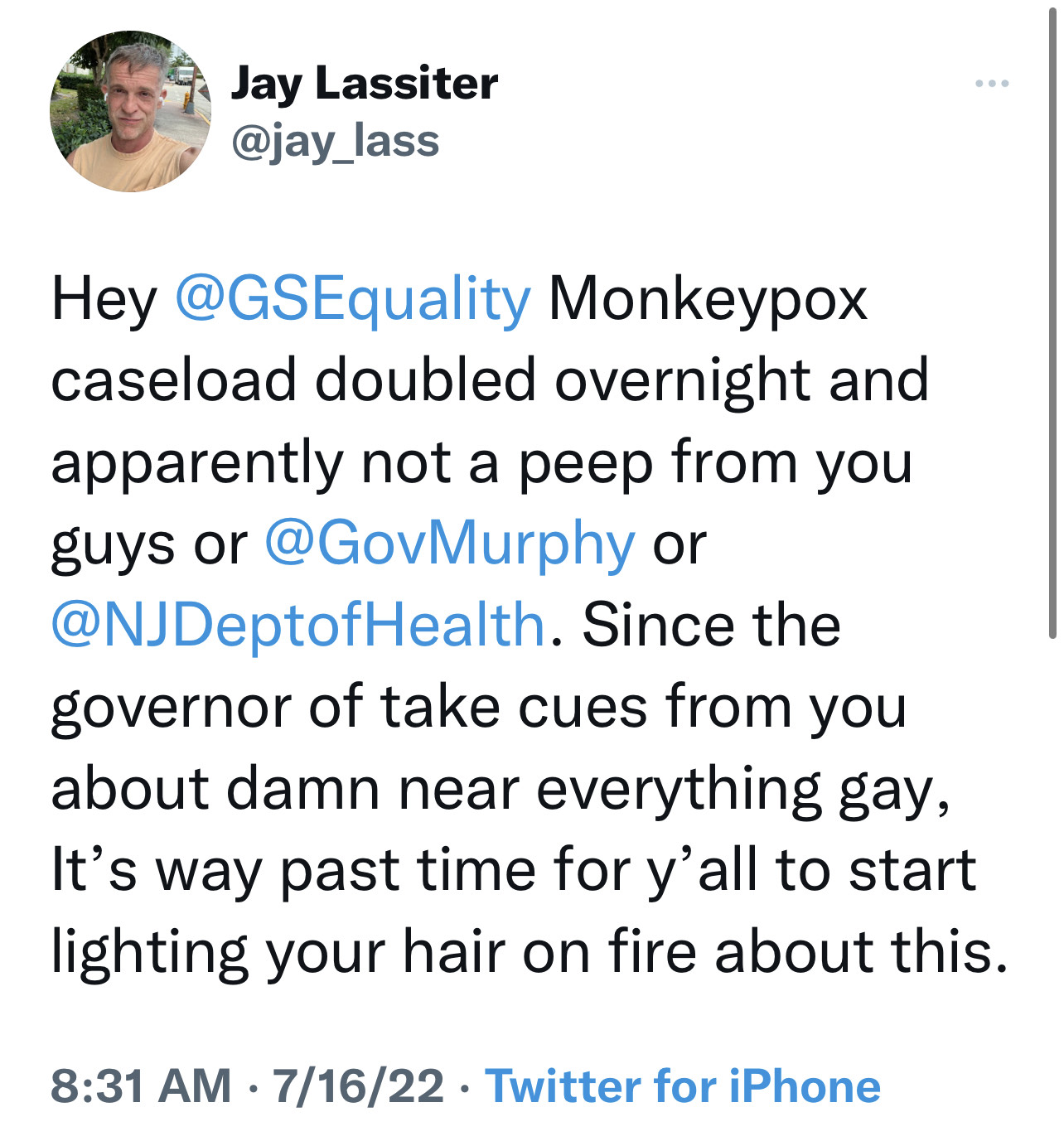 I got a much- coveted monkeypox vaccine this week and I can’t help but wonder: did I win the vaccine lotto out of sheer luck? Or was it more to do with my loud mouth? Probably a little of both to be honest. But when a board member of Garden State Equality helped secure my jab, I seized the opportunity even though I still think monkeypox caught GSE woefully flat-footed. And to the extent Governor Murphy takes his cues on LGBTQ issues from Garden State Equality, greater urgency from GSE might’ve stalled MPX’s momentum.