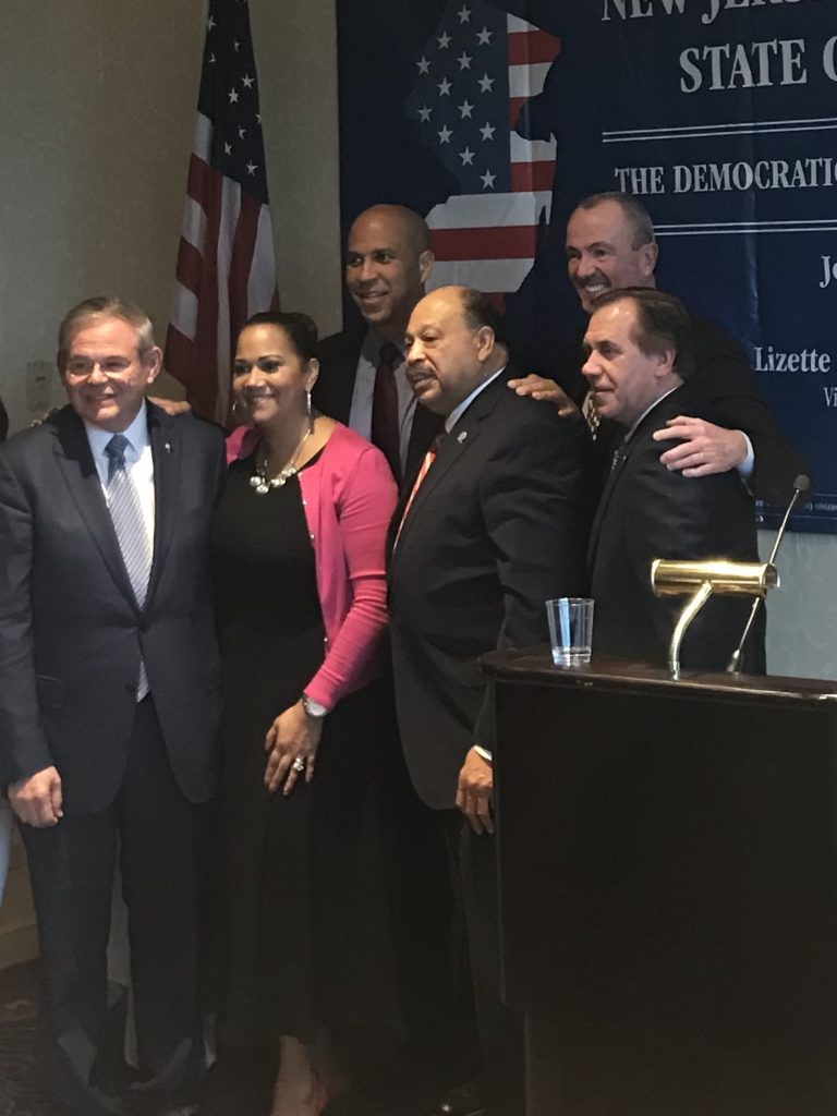 Ok, she didn't get Senate President Steve Sweeney (D-3) there, but the new executive director of the state party committee - who's close to the Governor - managed to engineer the lumping of Governor Phil Murphy, Democratic State Party Chairman John Currie, Vice Chair Lizette Delgado Polanco, Speaker Craig Coughlin (D-19), and Senators Bob Menendez and Cory Booker at the East Brunswick meeting of the party committee this week, which apparently turned into a Menendez lovefest.