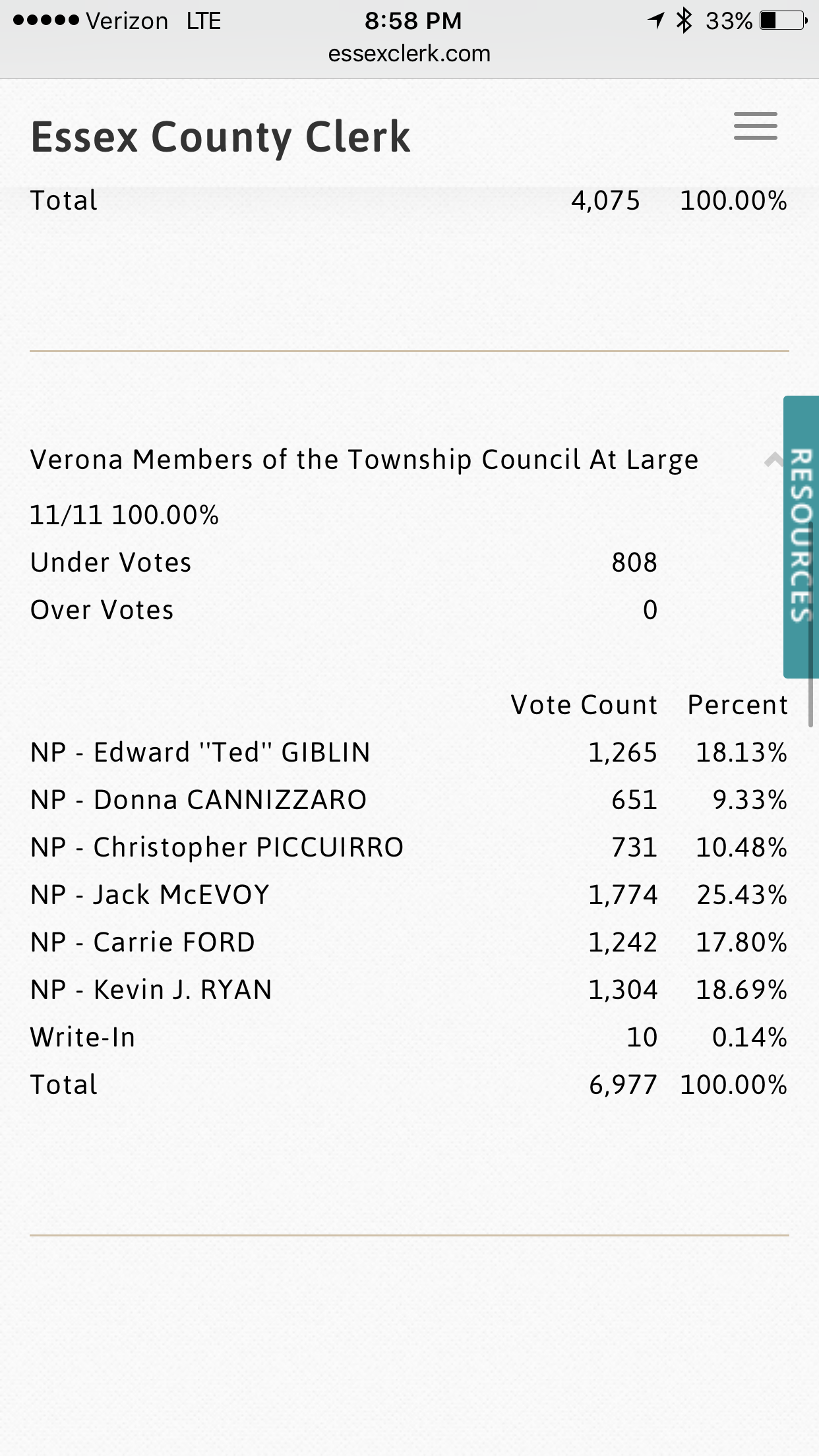 The son of Assemblyman Tom Giblin won a local council seat in Verona nonpartisan elections on Tuesday night.